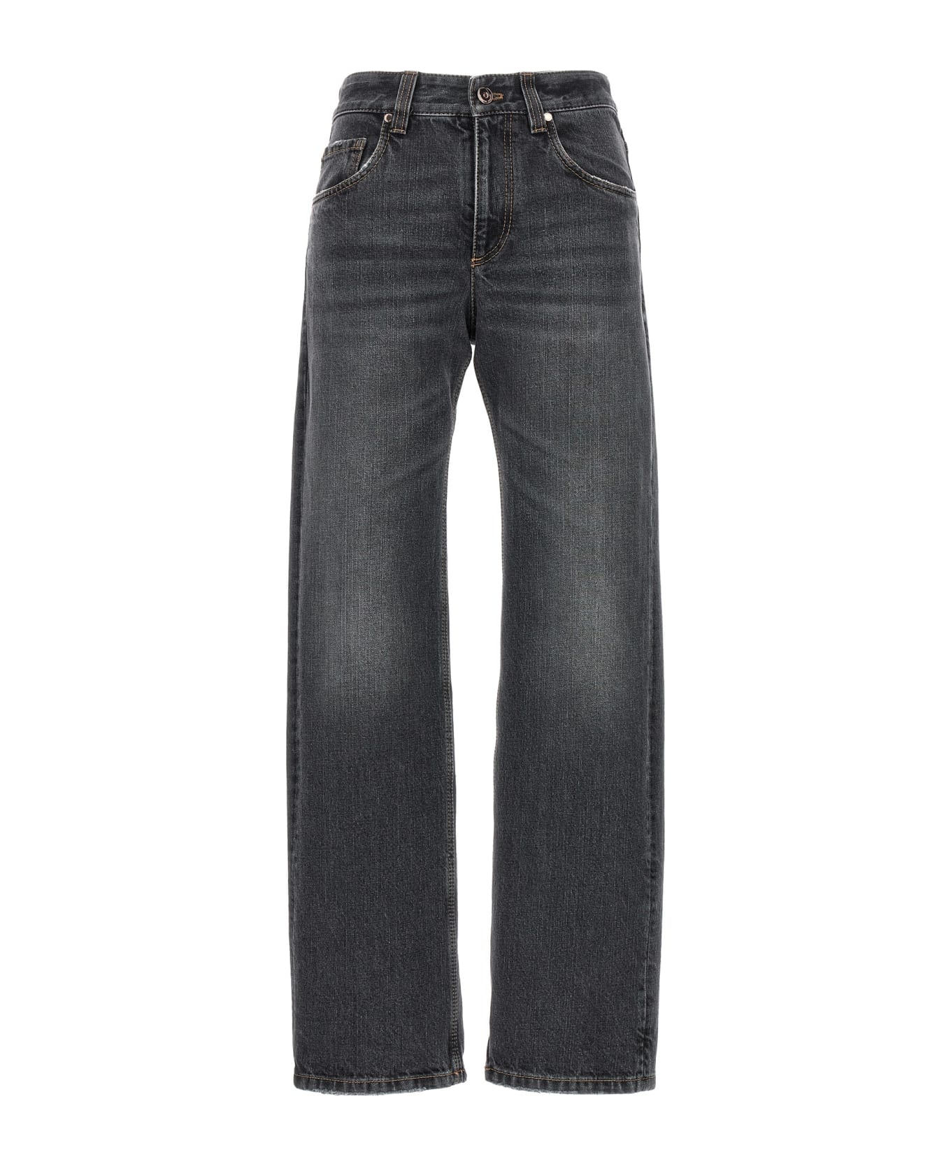 'The Retro Vintage' cotton denim jeans with used-effect details, zip and button closure, five pockets, leather logo tag. Composition: 100% cotton