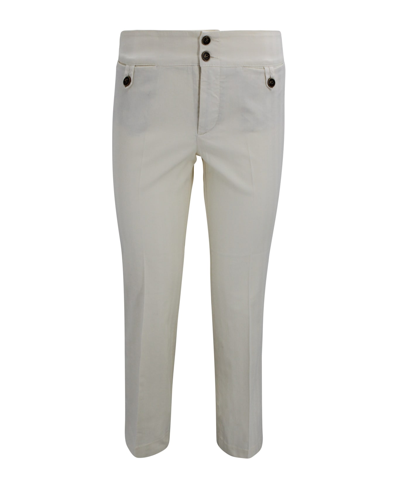 Trousers crafted in white fabric with button details and tone-on-tone stitching, featuring a concealed closure and regular fit. Practical and versatile, ideal for elegant or casual-chic outfits.