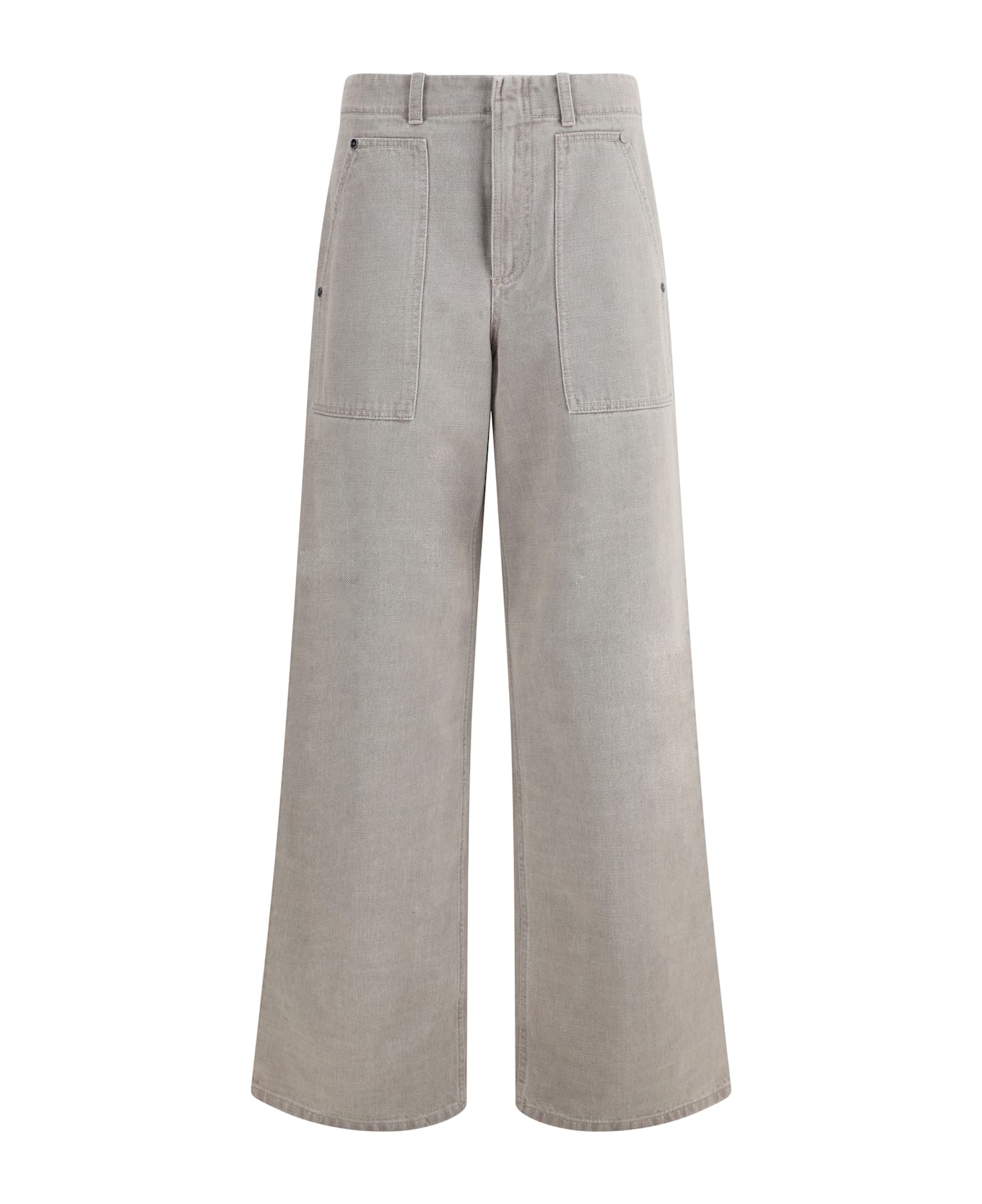 Fendi's wide leg jeans is a statement piece with a high waist and a figure-flattering wide silhouette. featuring a zip-and-button front closure and belt loops at the waist, it has two patch pockets on the front and two on the back. on the back stands out the iconic embossed logo, a distinctive detail that finishes the design with the elegance typical of the maison.