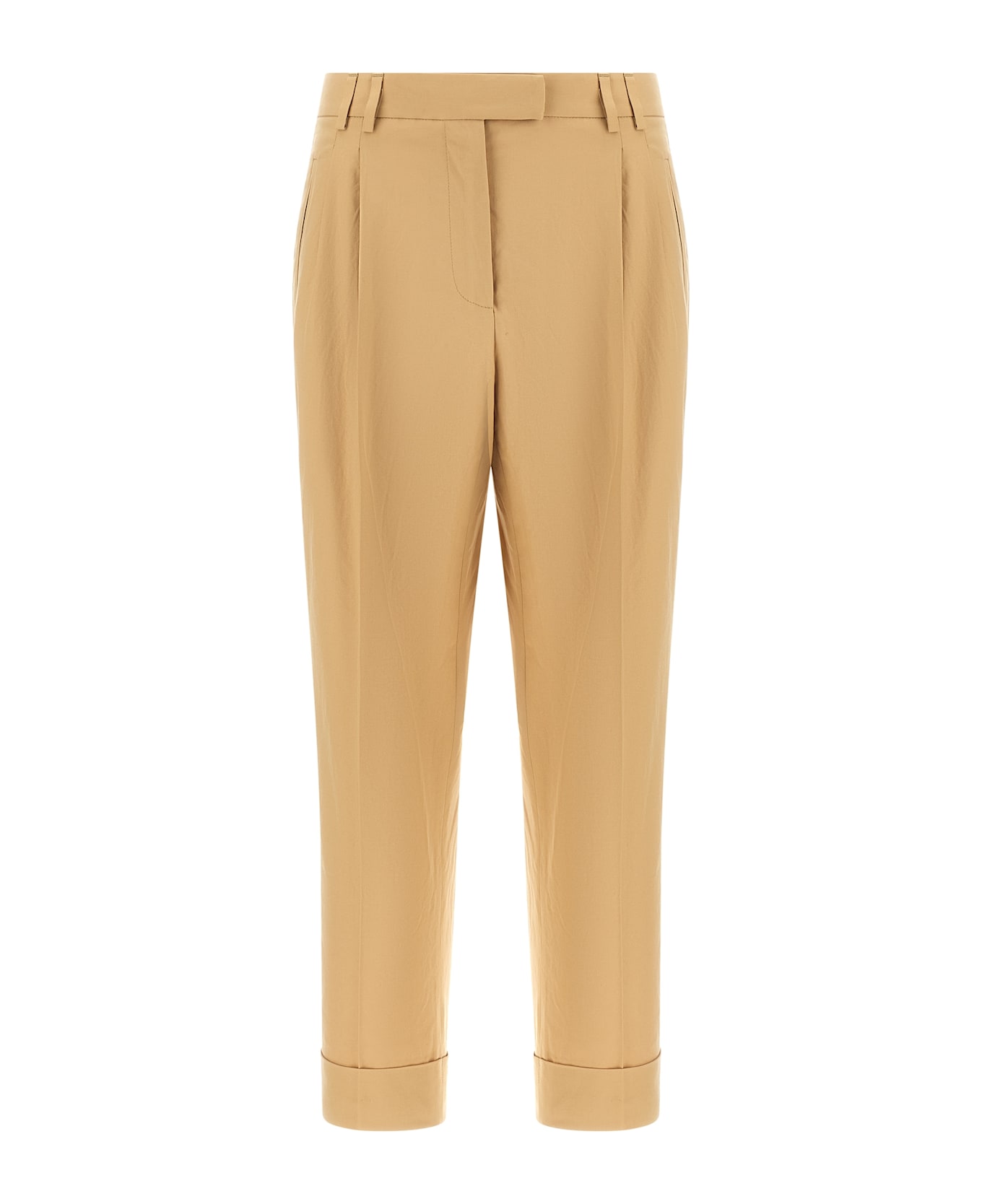 'Albertino' cotton canvas pants, pins, straight leg, hook and button zip closure, front American pockets, back welt pockets, turn-up on the leg bottom. Composition: 100% cotton