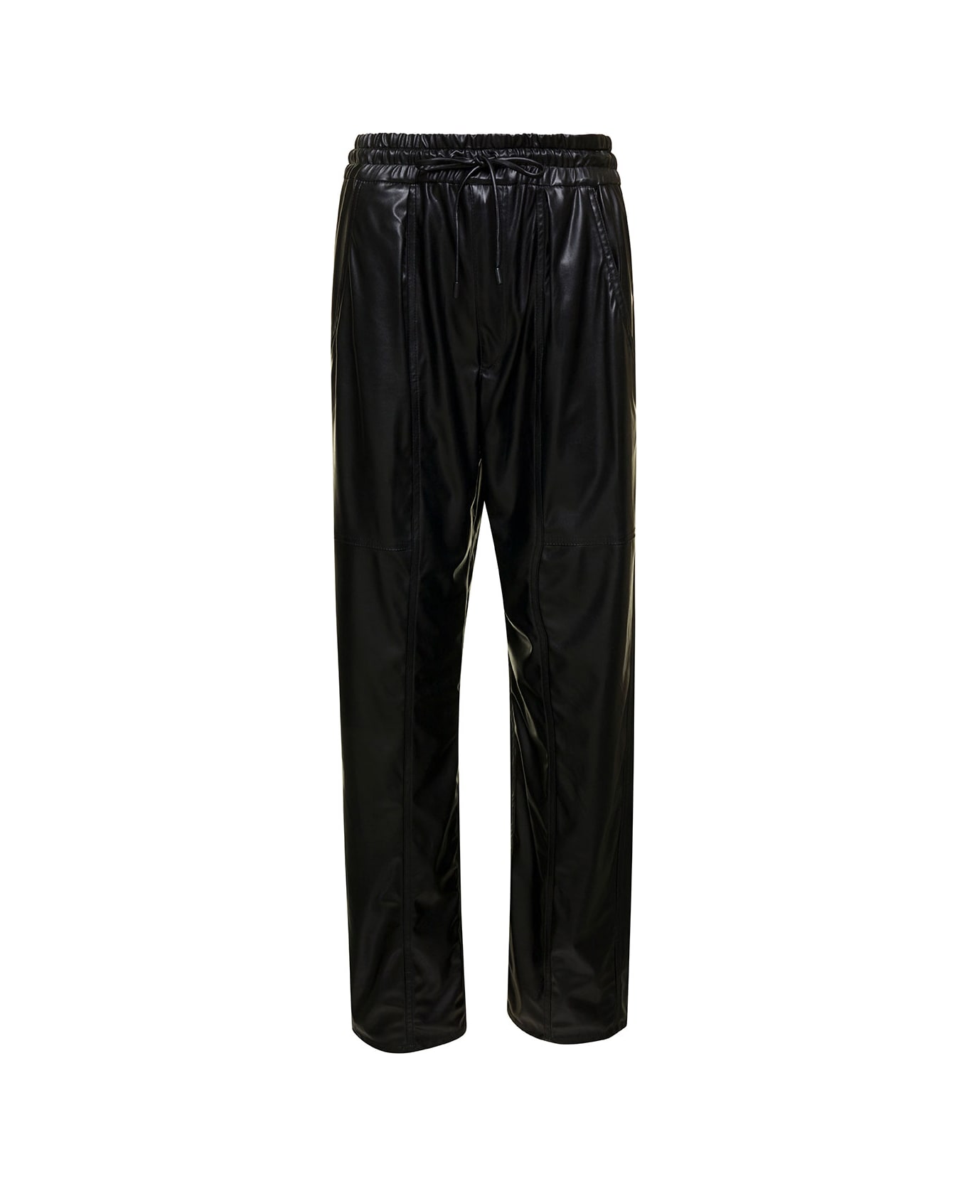 'brina' Black Pants With Drawstring Closure In Shiny Faux Leather Woman