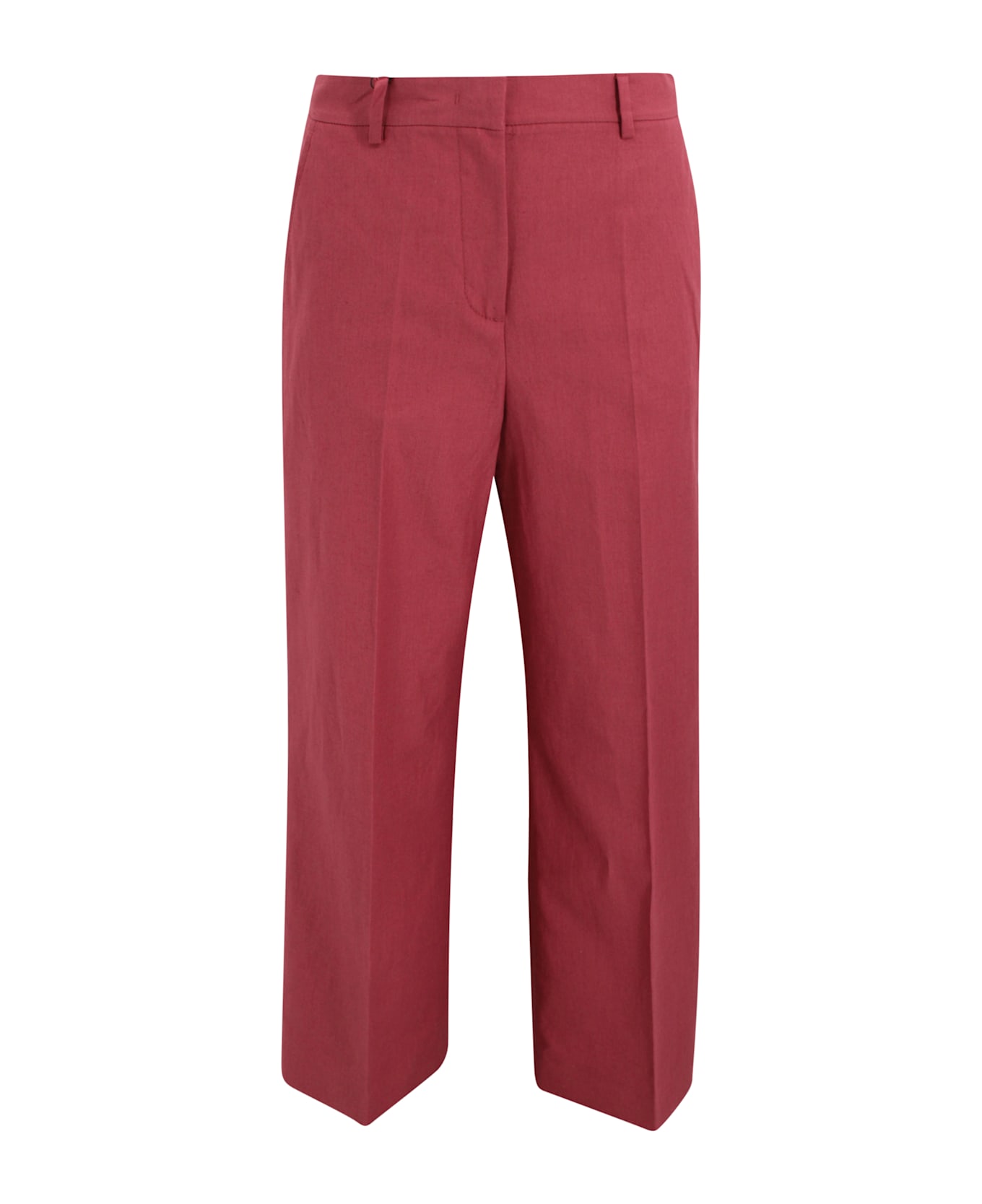 Palazzo trousers crafted from cotton twill, featuring a wide-leg silhouette enhanced by a pressed crease. The design includes side pockets, rear welt pockets with button, and a concealed zip and hook fastening for a clean, tailored finish.