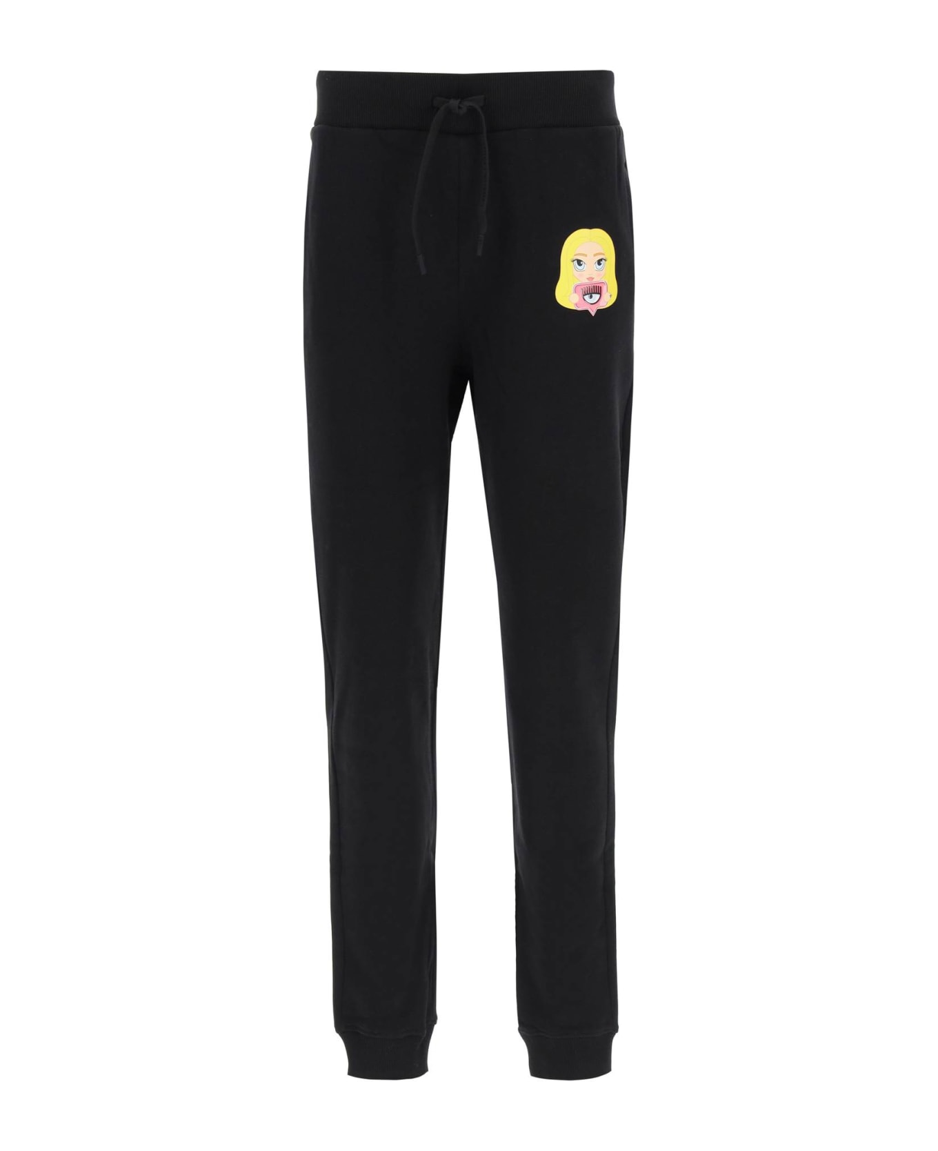 CHIARA FERRAGNI jogging trousers in fleece-back jersey, featuring Eyelike Mascot print on the front. Loose fit with elasticated waist and drawstring, side pockets and ribbed stretch hem. The model is 177 cm tall and wears a size S. Composition: 100% cotone
