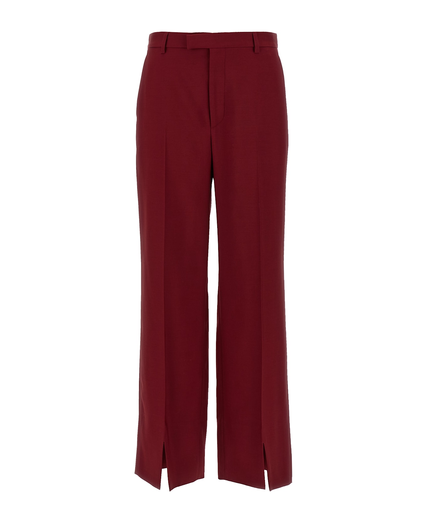 'Gucci Rosso Ancora' wool trousers, stretched pleat, straight leg, hook and front button zip closure, pockets, front split on the leg bottom. Composition: 100% wool