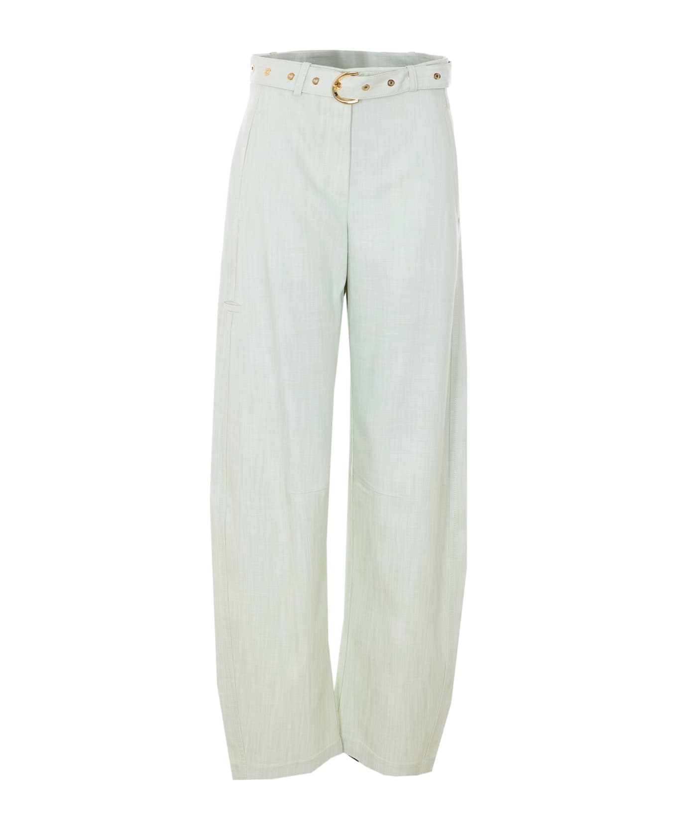 Pinko green Lexy pants, zip and button closure, belt on waist, lateral pockets, loose fit Composition: 91% Viscose, 8% Polyester, 1% Elastane, 67% Acetate, 33% Polyester