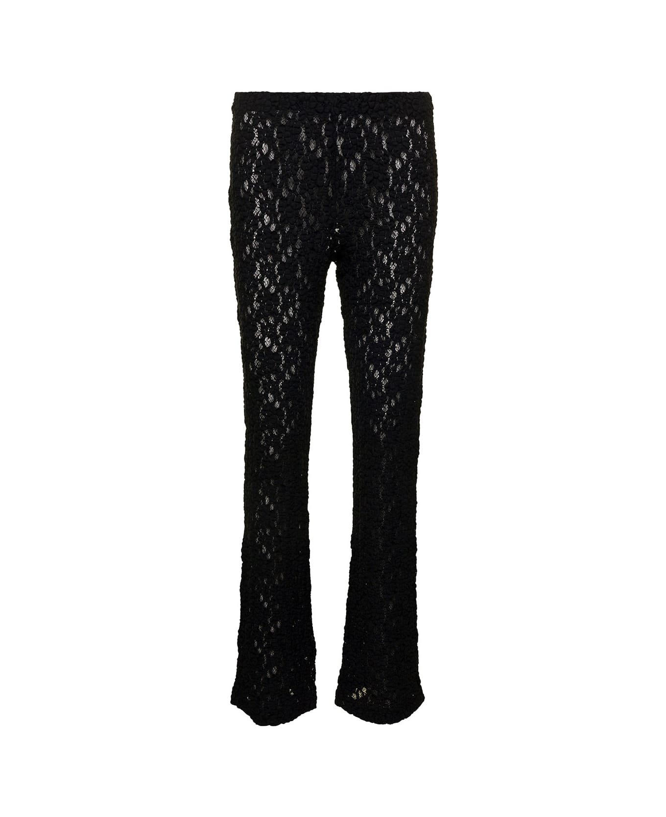 Black Flare Pants With Elastic Waistband In Floreal Lace Woman