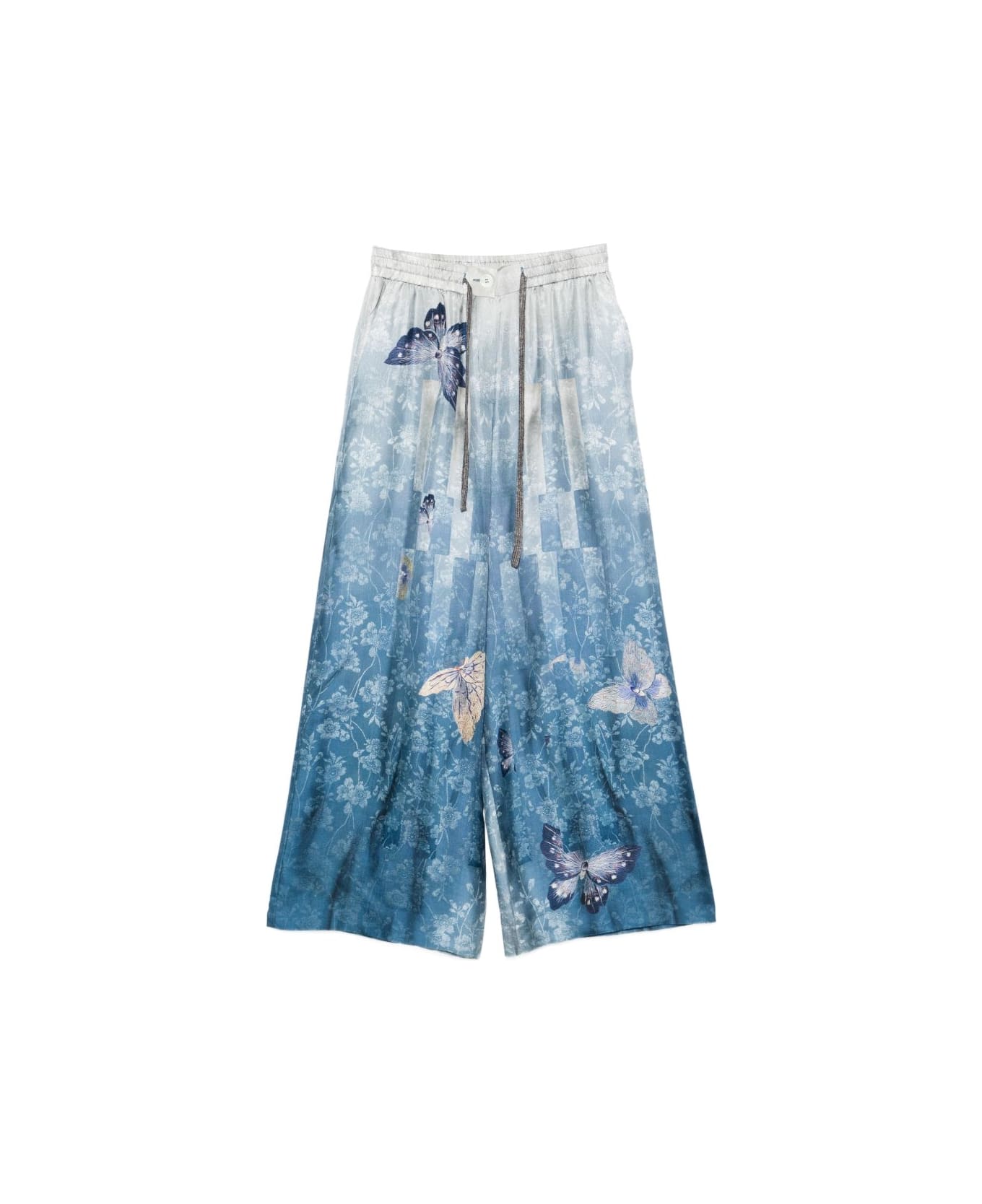 blue and multicolour butterfly print floral print drawstring fastening elasticated waistband button fastening