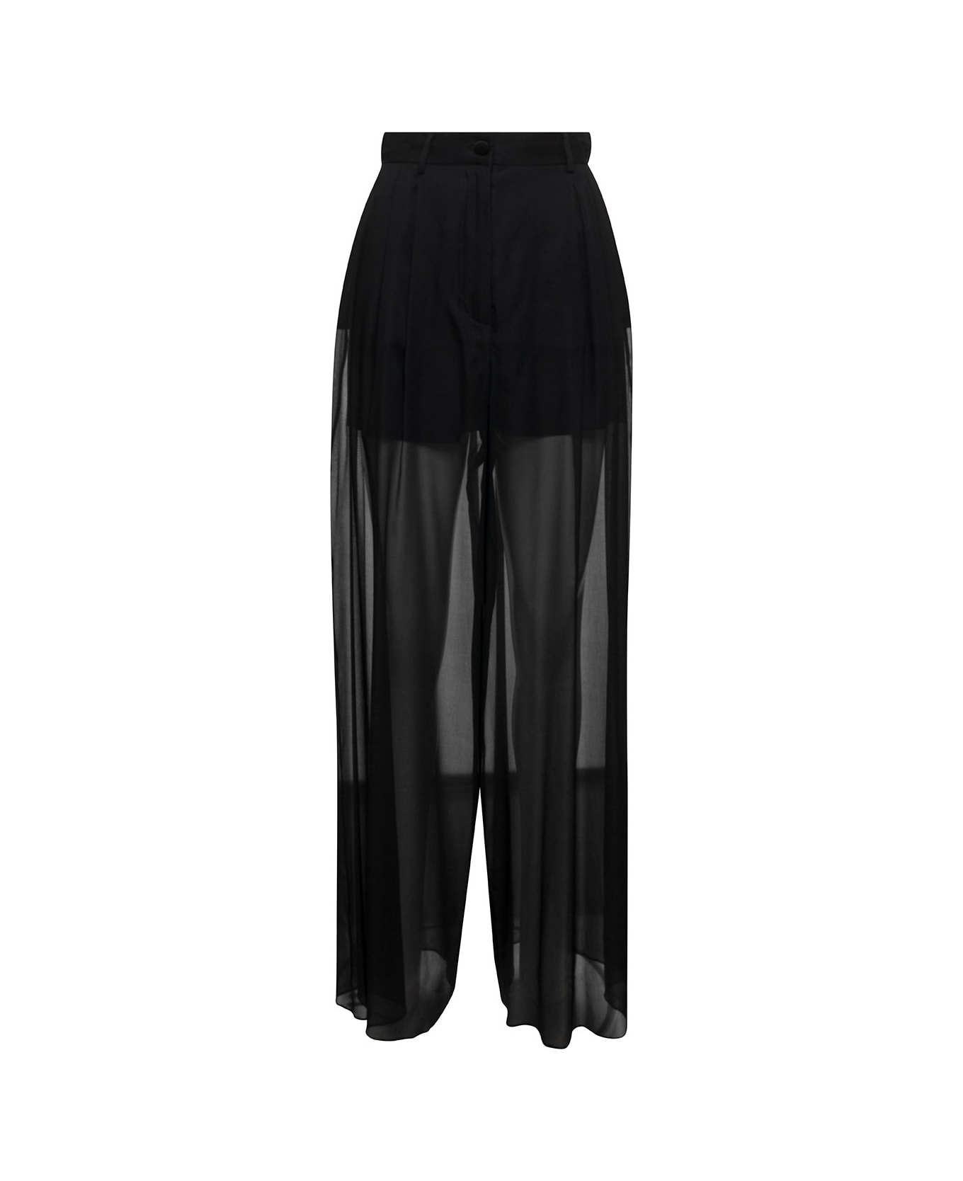 Loose Black Pants With Detachable Culottes In Stretch Silk Chiffon Woman
