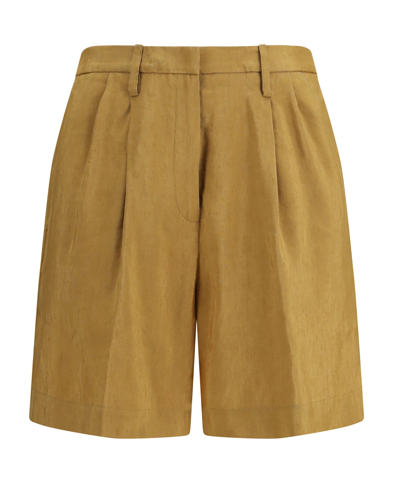 The slubbed linen and viscose bermuda pants with hook and zip closure by forte-forte are crafted from a textured fabric that blends lightness with structure. the clean silhouette enhances the figure with natural balance, while the single hook and zip fastening defines the waist with functional precision. a piece designed for relaxed yet contemporary elegance, reflecting the brand s refined sensibility.