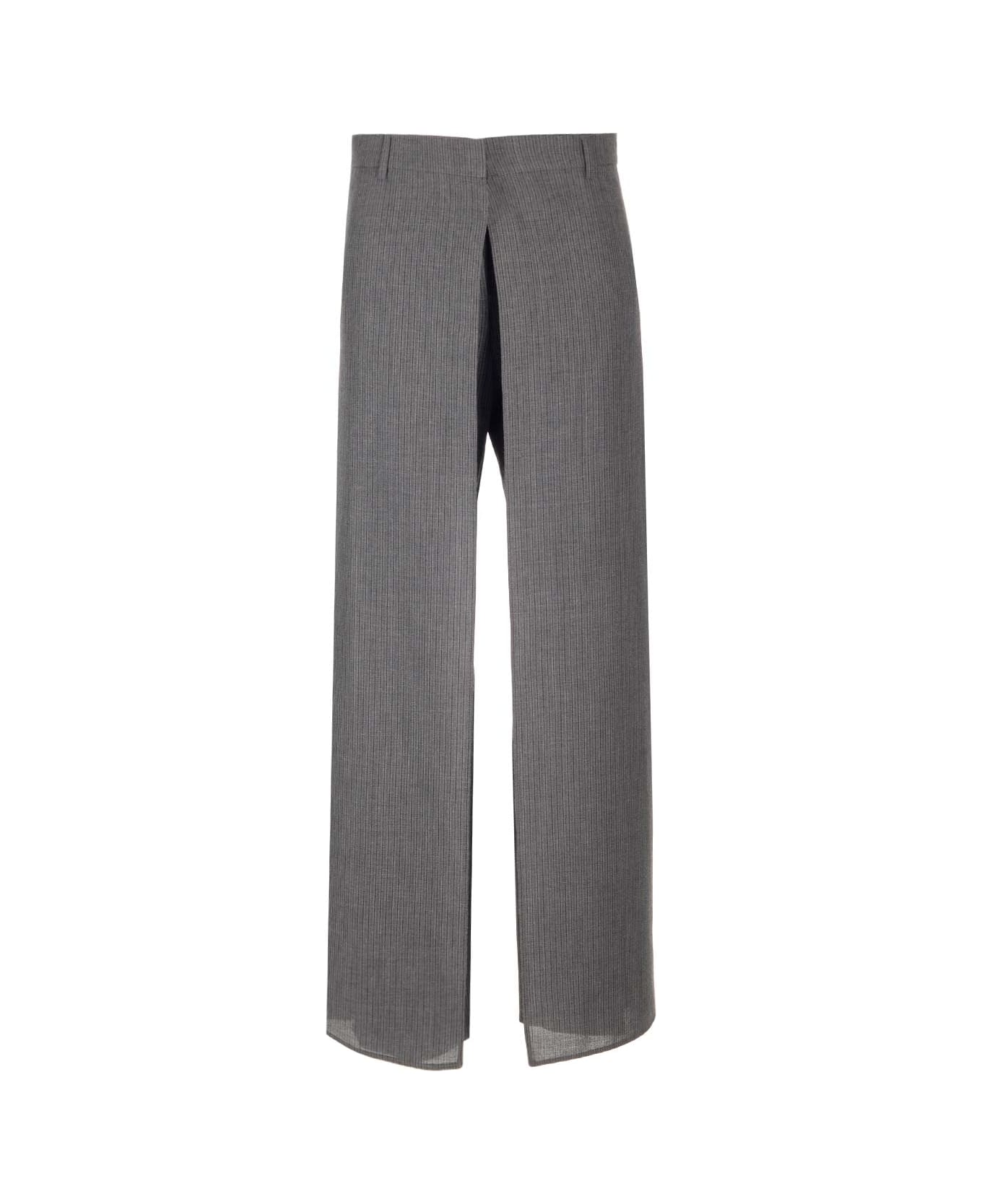Wide-leg trousers from Fendi, in m nge gray pinstripe wool, covered zip and hook, side panels, to be tied at the waist or left draped on the hips. Composition: CXADV3 100%WV+FOD. :100%CU