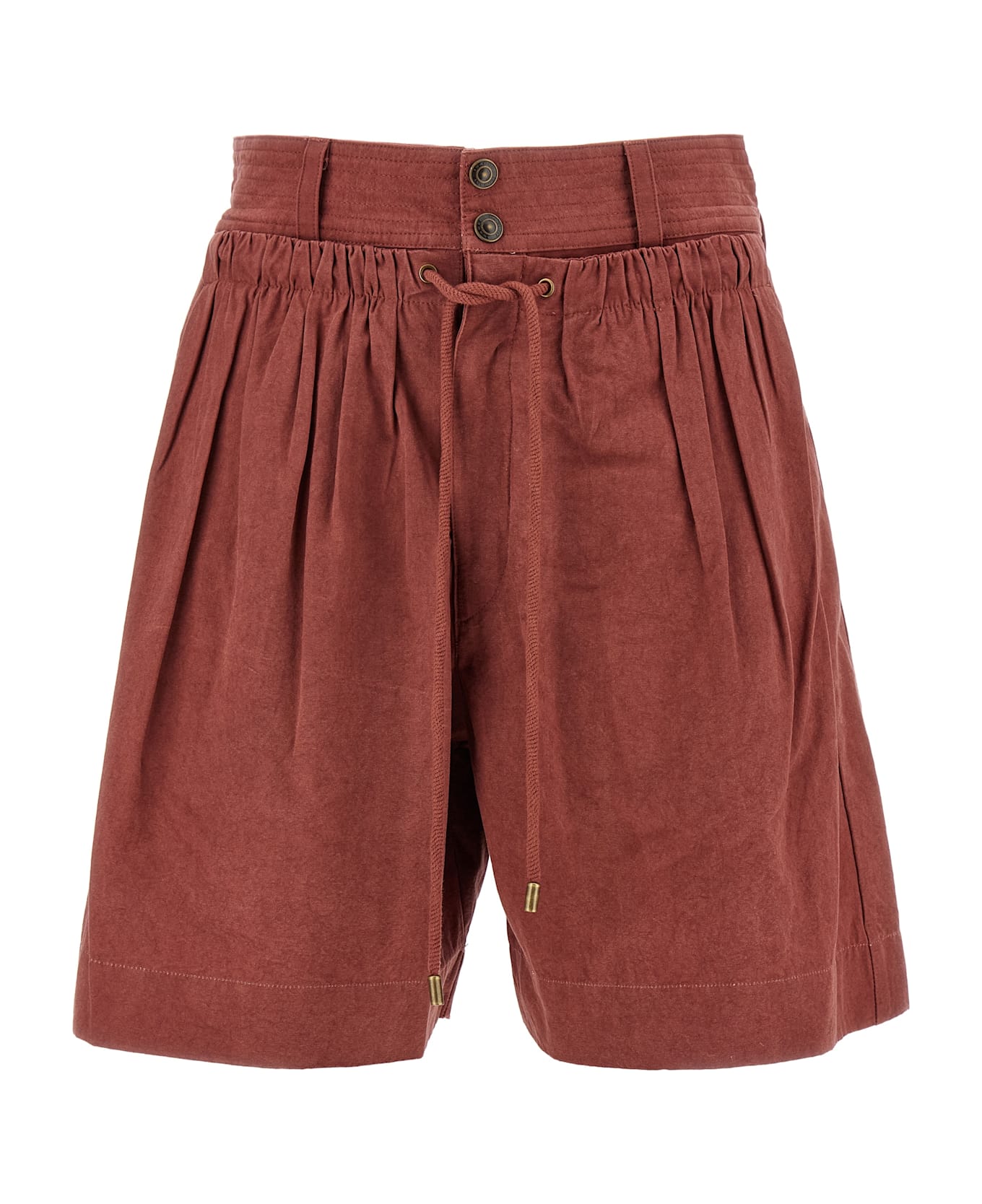 'Ingrid' high waist cotton bermuda shorts with front curls with drawstring at the waist, front zip and button closure, pockets.