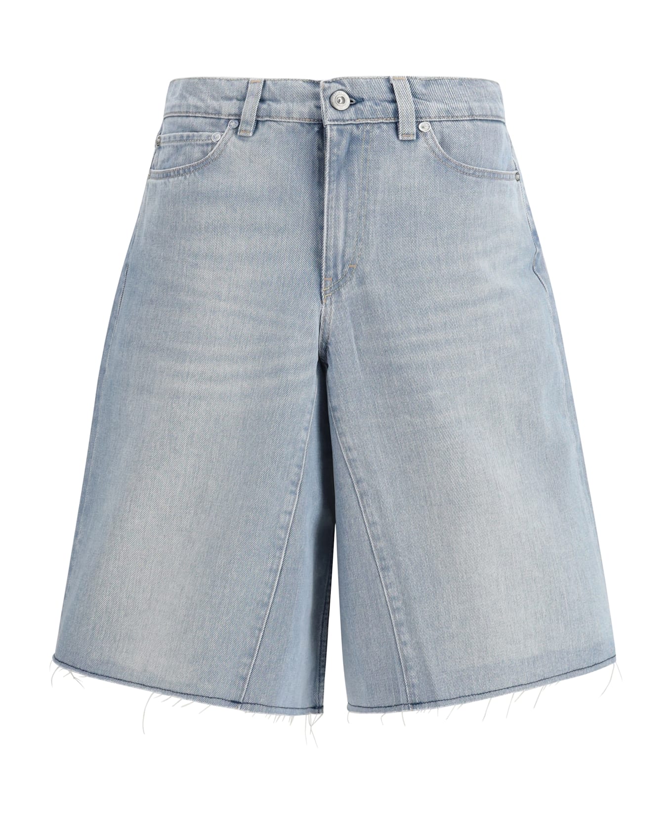 The midi shorts pale coast wash by our legacy are crafted from turkish fabric with a pigment coated finish that enhances the depth of the denim. they feature a raw hem, inner leg panel and curved front pockets, completed by a back patch pocket and yoke. steel rivets and an embossed logo patch define the design, shaped by a modern a line silhouette.