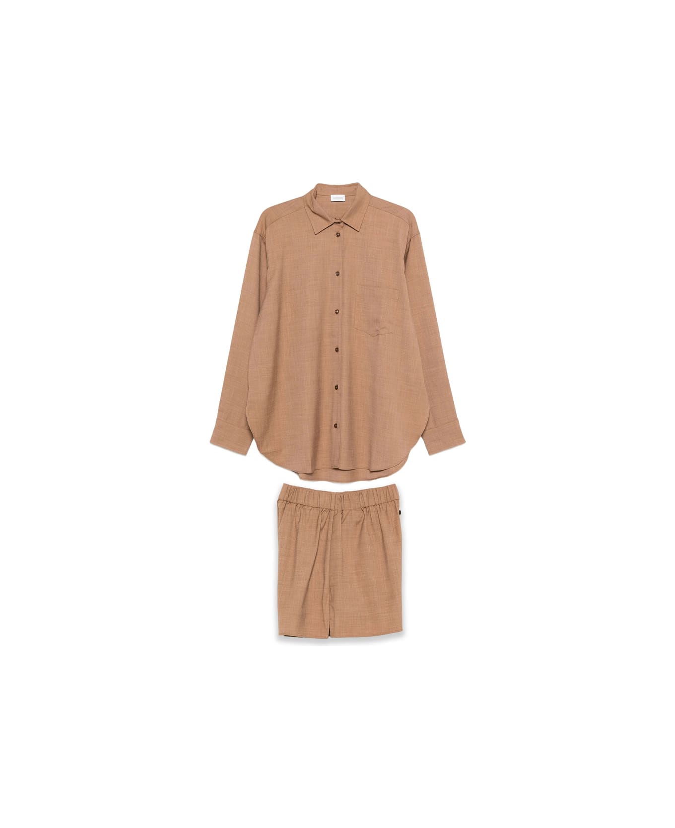 light brown elasticated waistband straight hem button fastening woven texture