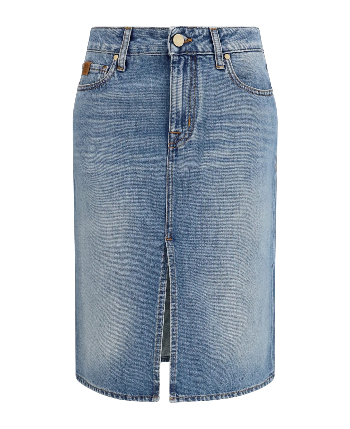 The denim midi skirt by jacob cohen is an elegant and versatile garment, featuring a slim five-pocket design that follows the line of the figure. the front button and zipper closure, along with belt loops at the waist, add functionality and a touch of practicality to the design. perfect for a casual-chic look, it can be easily paired with various styles and occasions.
