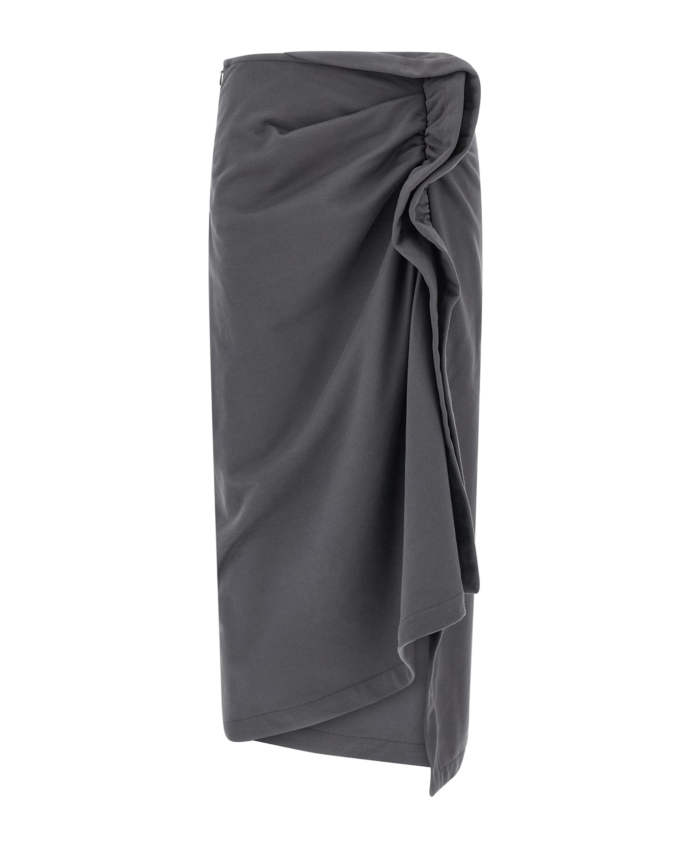 'Hanam' cotton fleece midi skirt, front ruffle detail, side zip closure.