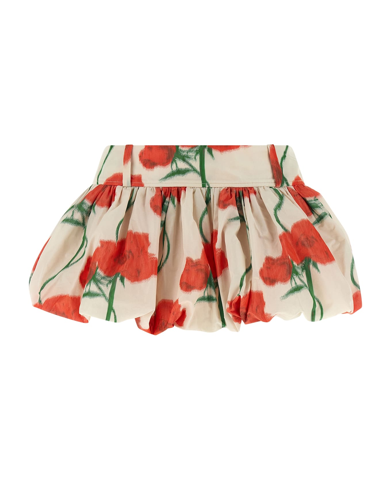 All-over mini skirt in taffeta KENZO Archive Rose print, balloon style with curls and pin tucks, and side zip closure.