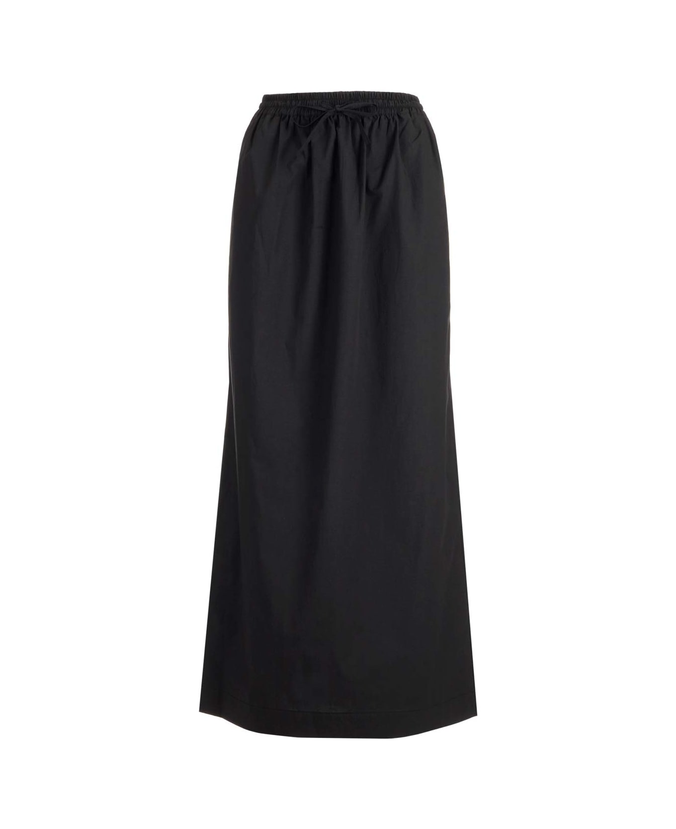 Long skirt from Matteau in matte black organic cotton, with elastic waistband and drawstring, side slit pockets, back vent.