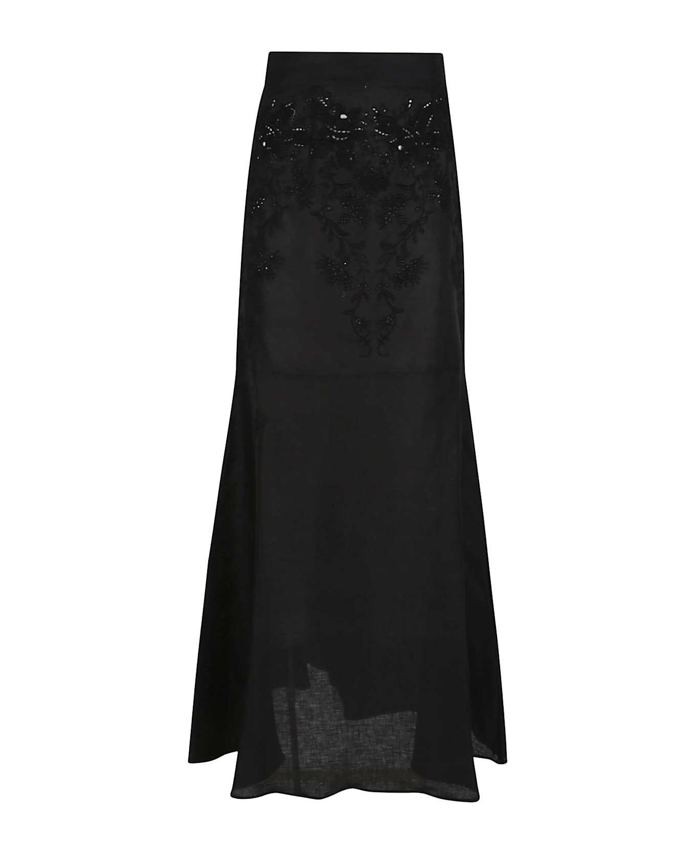 Long linen skirt by ERMANNO SCERVINO. Concealed zip closure on the back; upper part design that follows the body shape and soft length. Embellished with lace applications with a floral design characteristic of the brand.