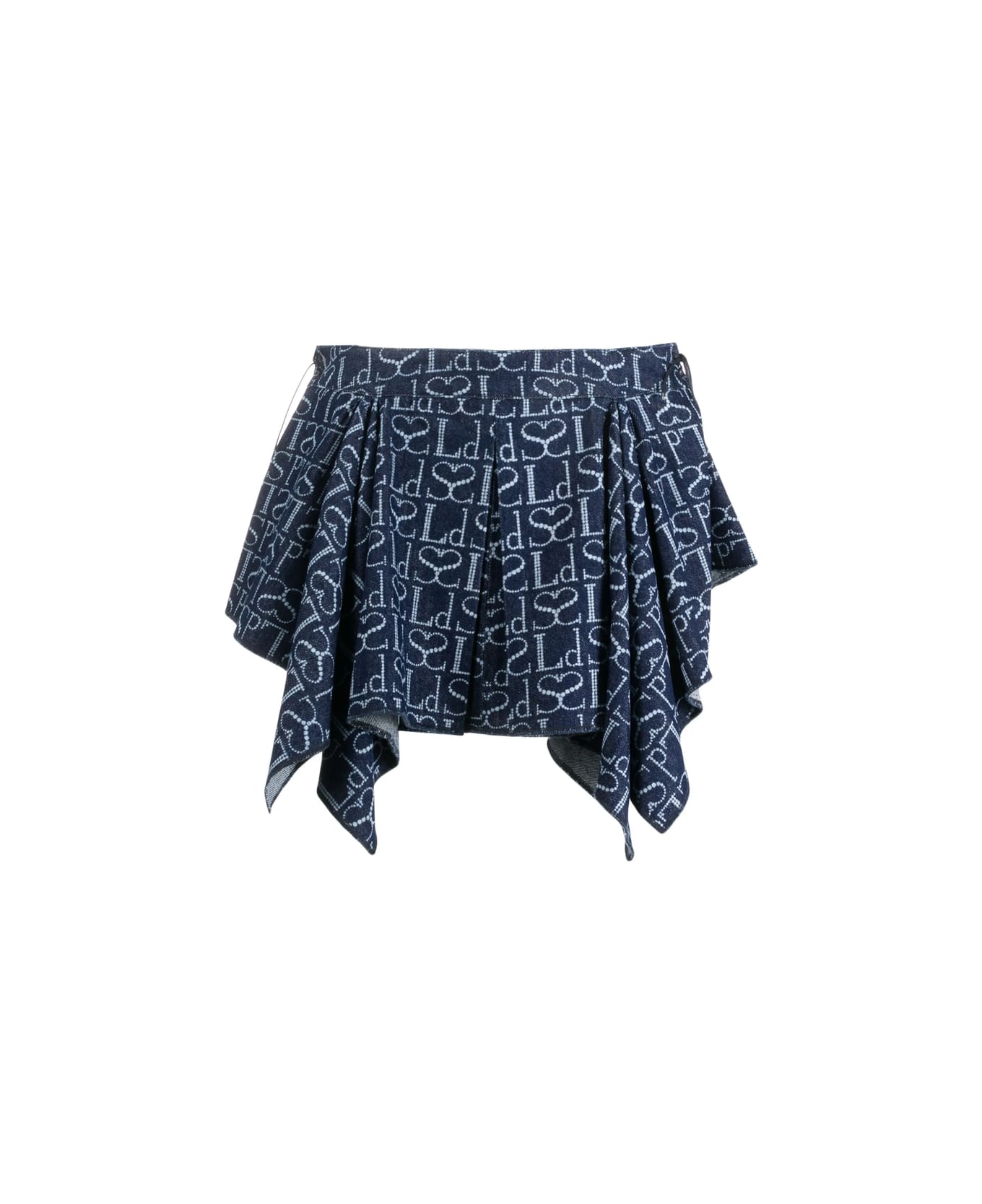 indigo blue cotton monogram pattern pleat detailing thigh-length asymmetric hem
