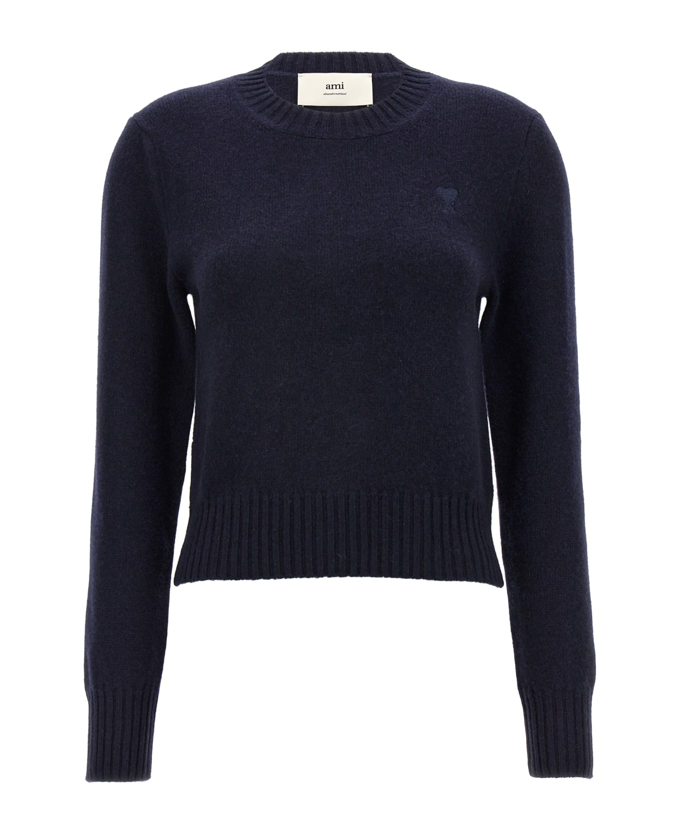 'Ami de Coeur' cashmere and wool sweater with front logo embroidery, crew neck, long cuffed sleeves. Composition: 97% cashmere 3% wool