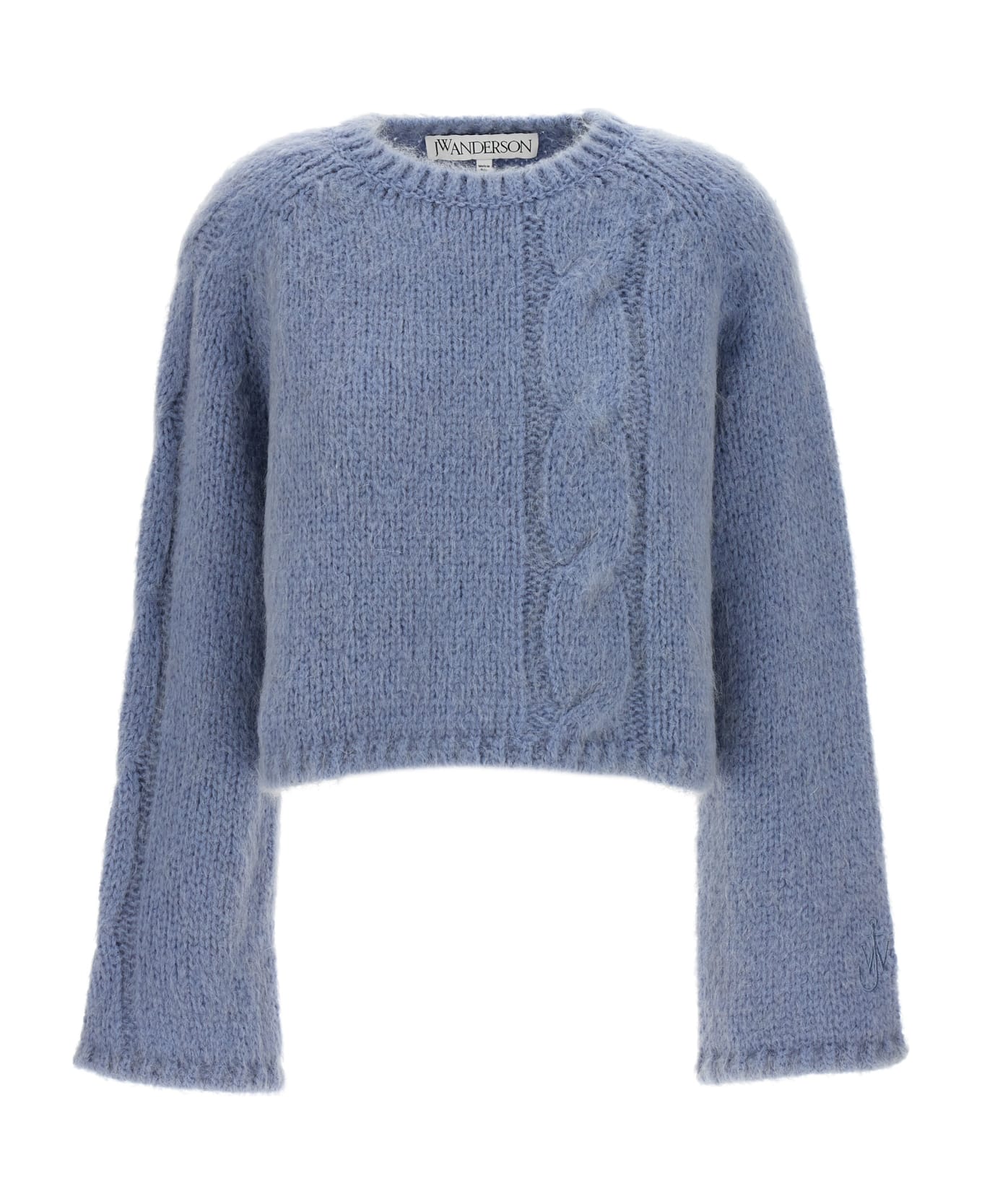 'Cable Knit' cropped sweater in mohair blend with crew neck and long sleeves.