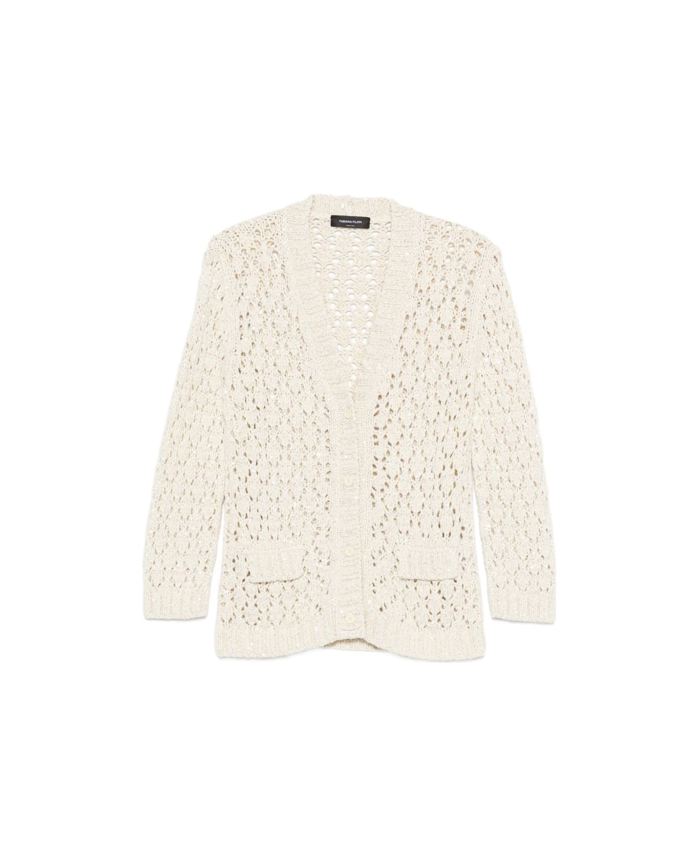 beige openwork knit front button fastening two front patch pockets V-neck long sleeves Composition: Cotton, 67% , Polyamide, 18% , Polyester, 15%