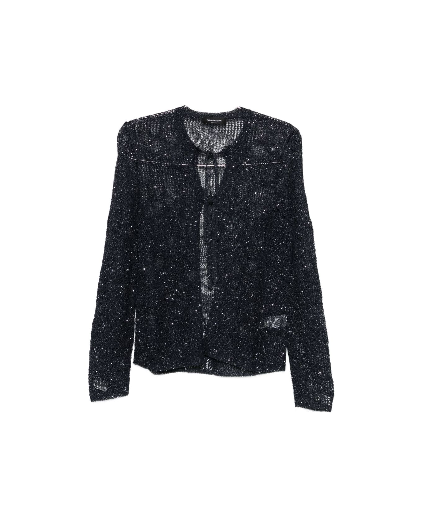 blue sequin embellishment open front round neck long sleeves knit construction