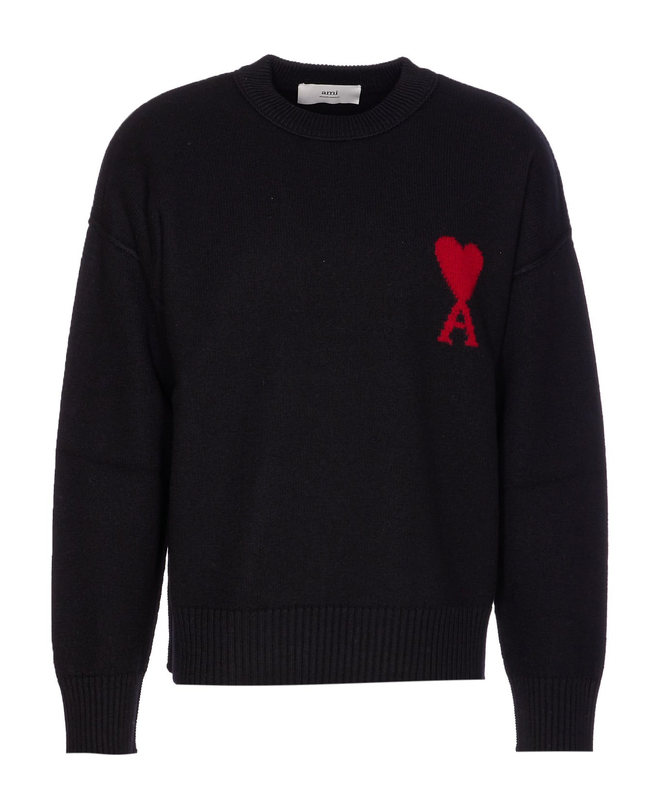 Ami - Alexandre Mattiussi black and red sweater, crewneck, embroidered Adc logo on the front Composition: 100% Virgin Wool