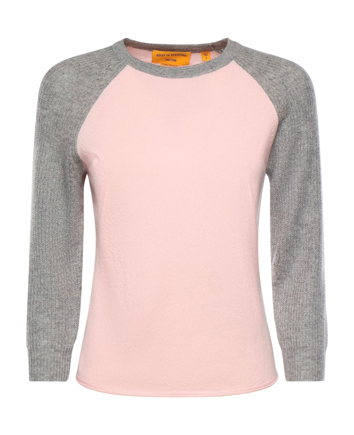 - Made of pure cashmere - Crew neck - 3/4 raglan sleeves - Ribbed collar, cuffs, and hem - Regular fit - Size shown is S - Designer color: Powder pink, Heather grey
