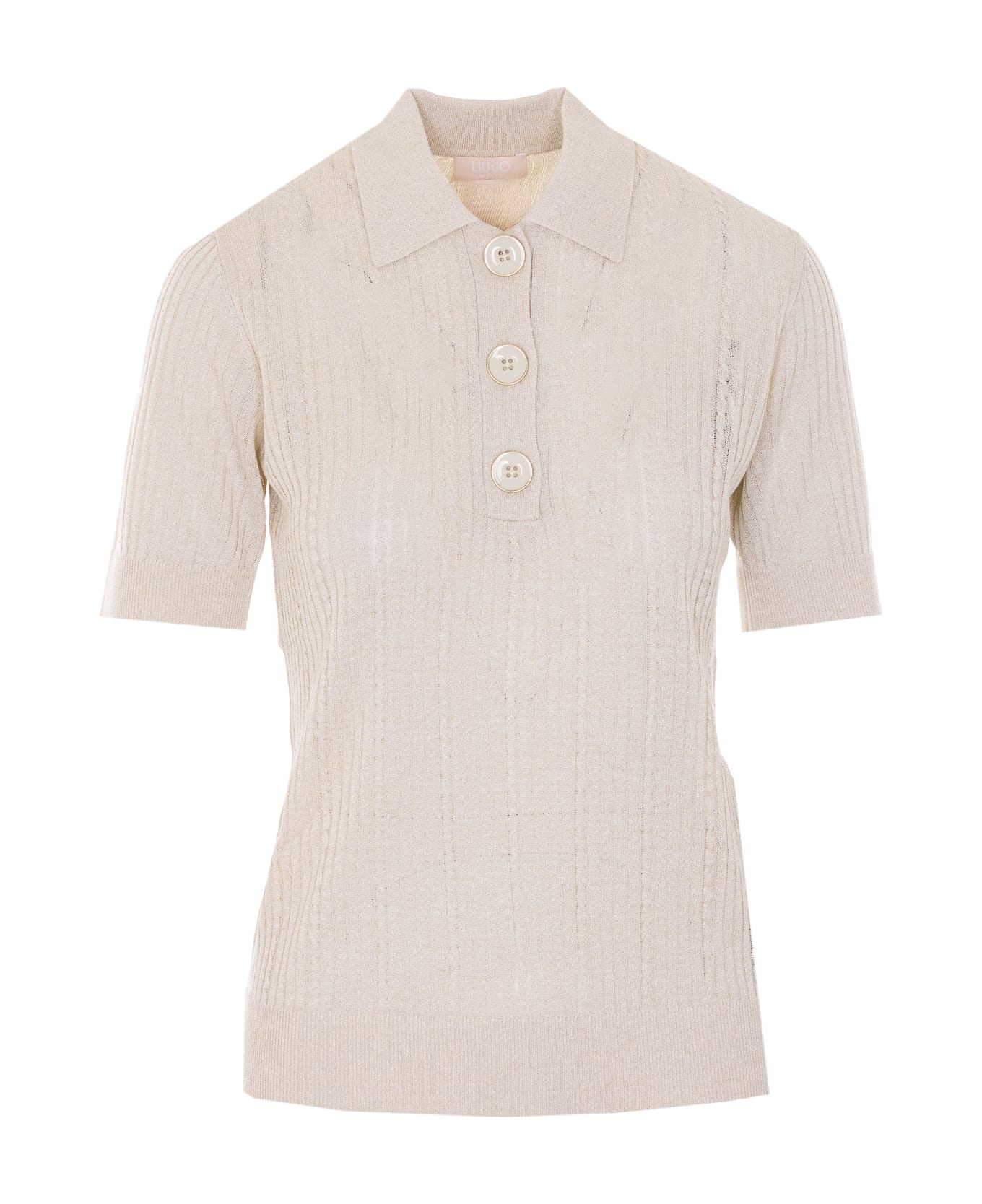 Liu Jo light gold tank top, round neck, lurex effect, back logo, frontal buttons closure Composition: 70% Viscose, 19% Polyester, 11% Polyester Metallized