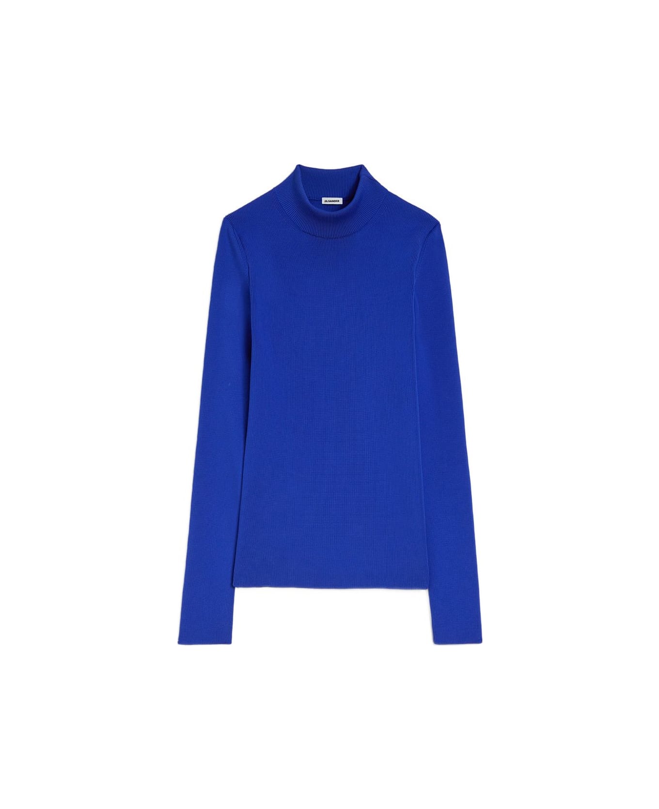 blue mock neck long sleeves ribbed knit Composition: 100% Polyester