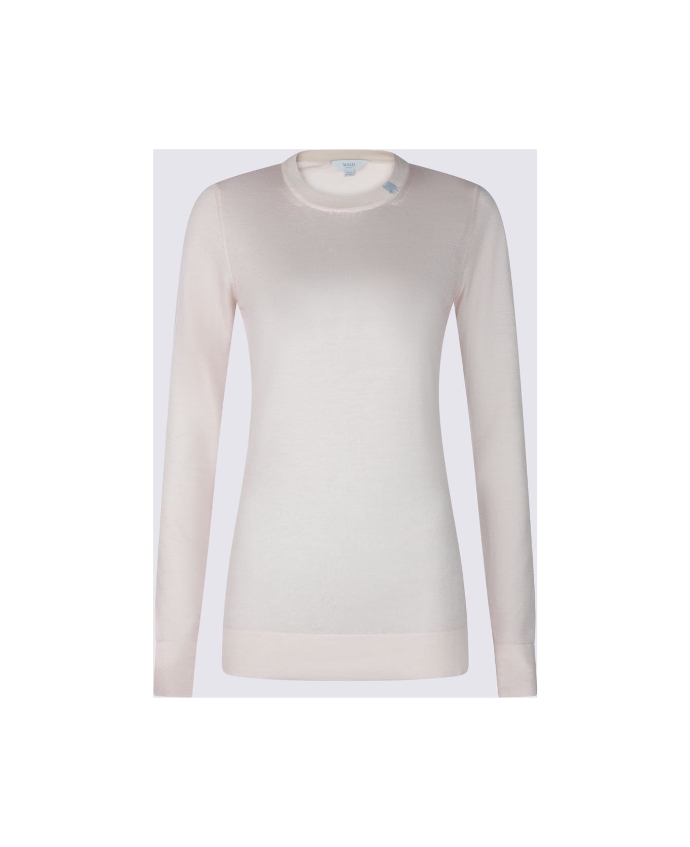 White wool knitwear from Malo featuring crew neckline, long sleeves, ribbed cuffs and hem and regular fit.