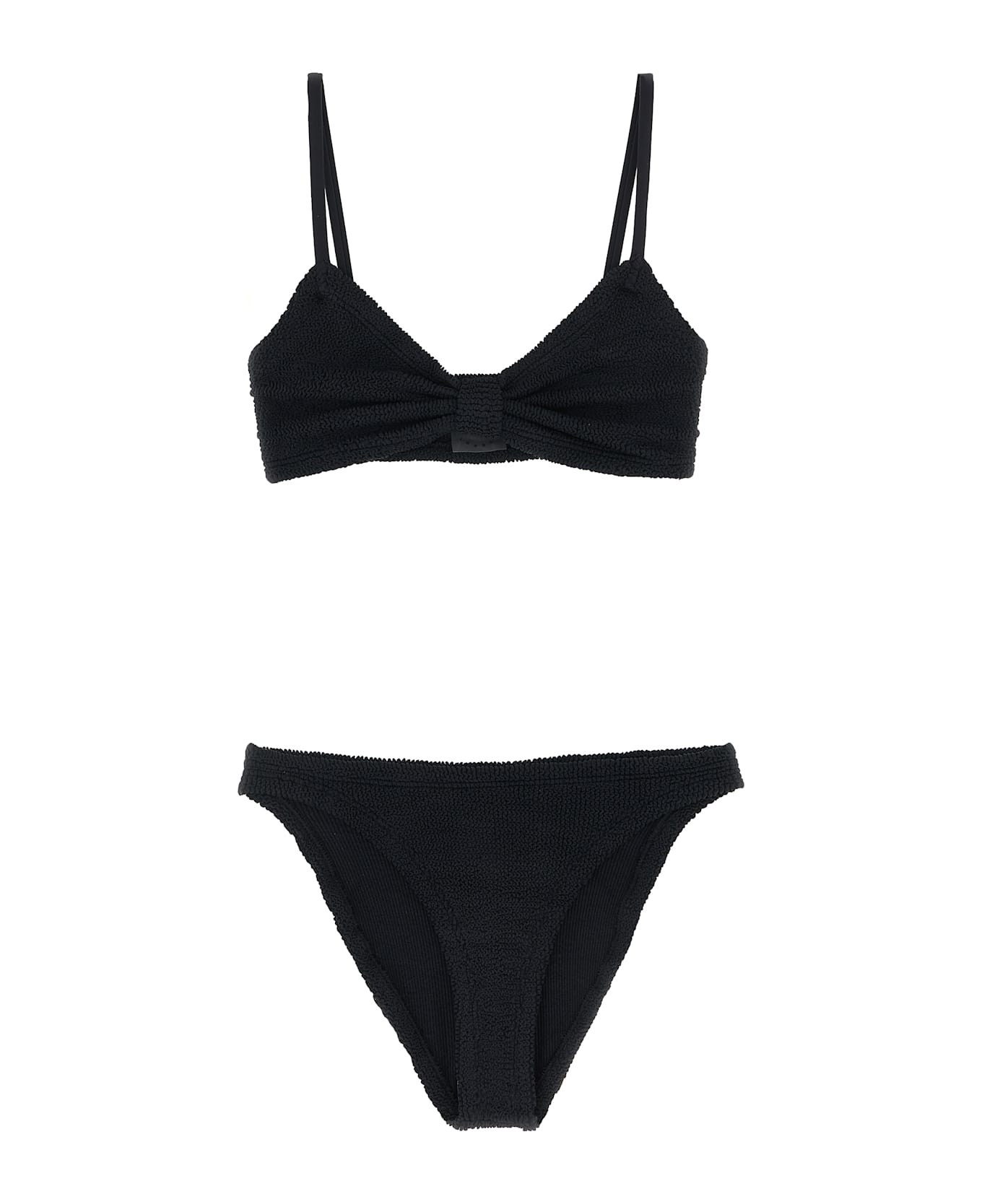 The Original Crinkle fabric Alicia bikini consisting of bralette top with thin straps and curled details with front bow effect, full breast support, classic coverage on the hem.