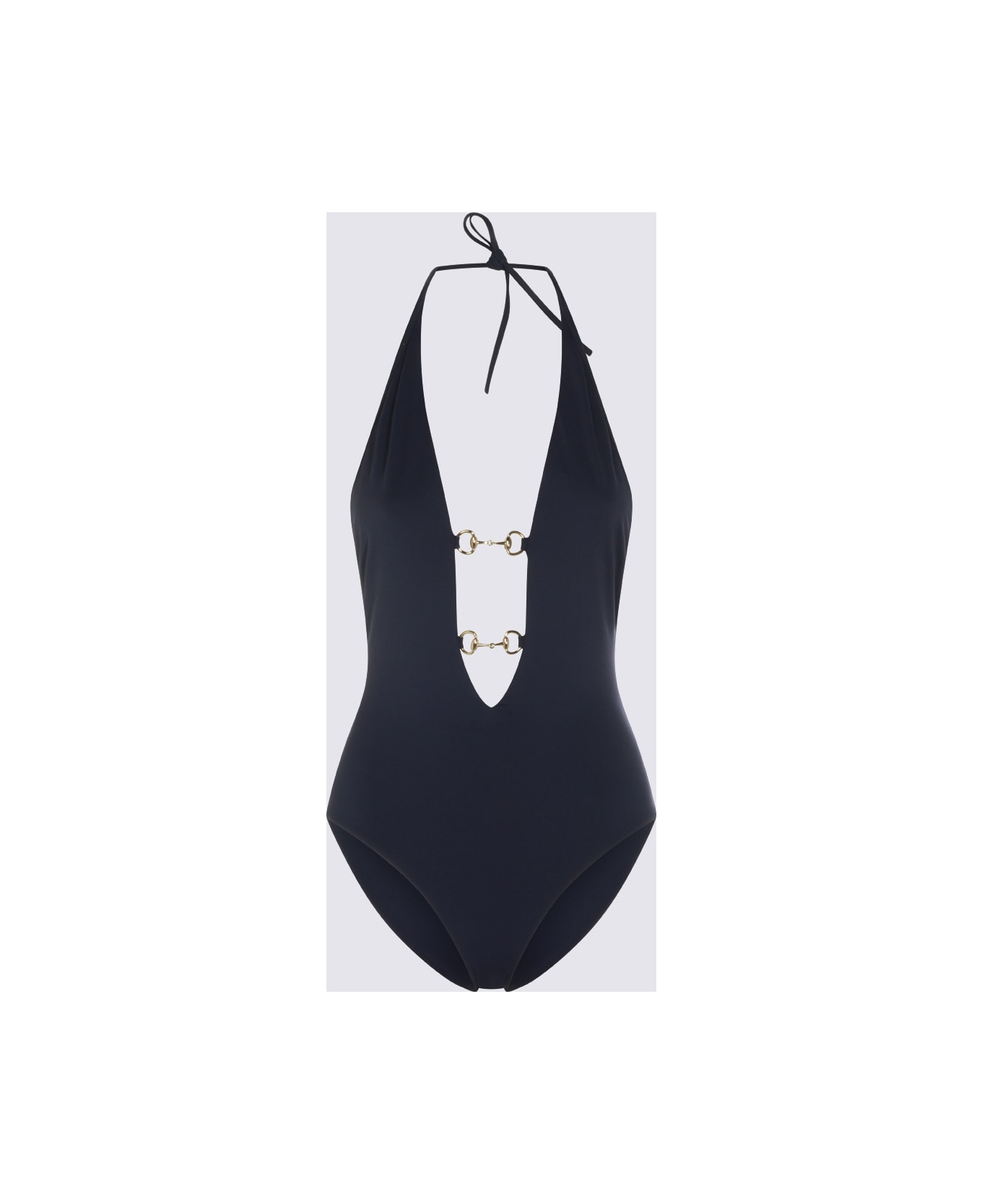 Navy swimsuit from Gucci featuring deep v neckline, laces closure on the neck, open back, horsebit details and elastic vestibility. Composition: _, 82% Polyamide, 18% Elastane