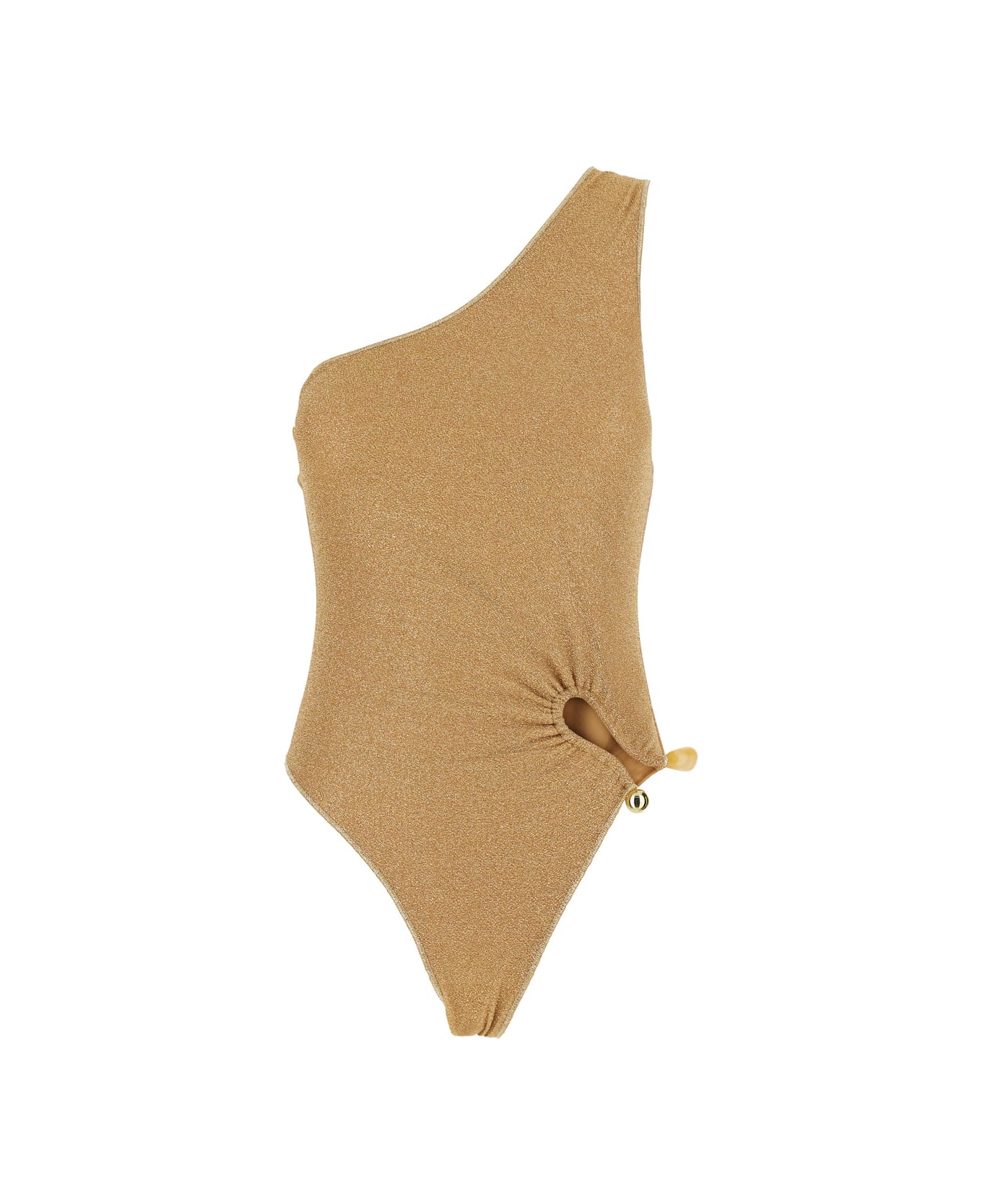 One-piece Swimsuit 'lumiere Stones' Gold With Asymmetric Strap In Tech Fabric For Women