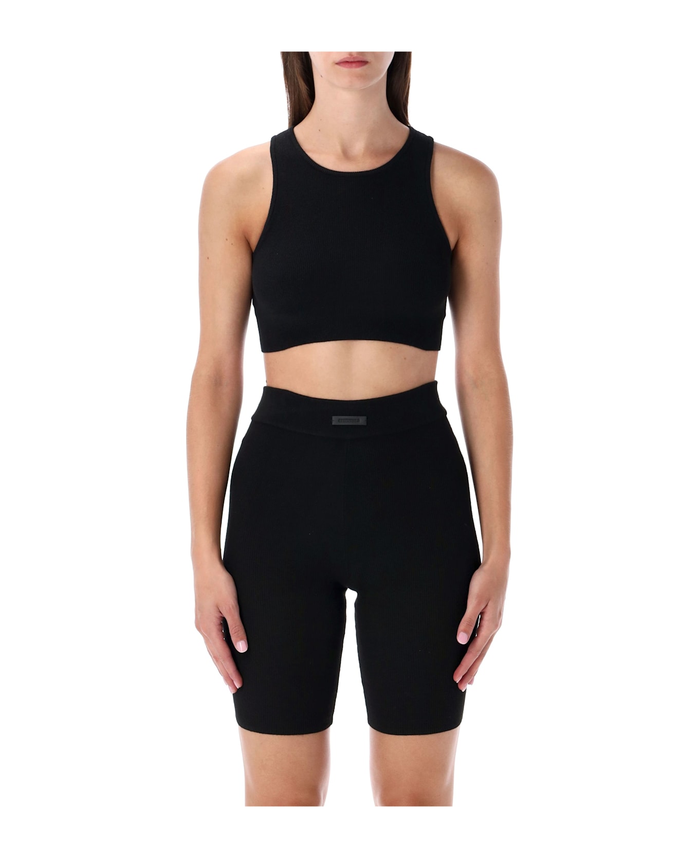The Black Fear Of God Essentials Crop Top Offers A Sleek And Versatile Silhouette Ideal For Both Casual And Active Looks. Crafted From A Soft Ribbed Stretch Fabric, It Features A Fitted Design With A High Round Neckline And Wide Shoulder Straps. Subtle Logo Detailing On The Back Adds A Refined Finish. Perfect To Style With High-waisted Shorts, Sweatpants, Or Layered Under Outerwear For A Modern Streetwear-inspired Outfit. Ribbed Stretch Fabric