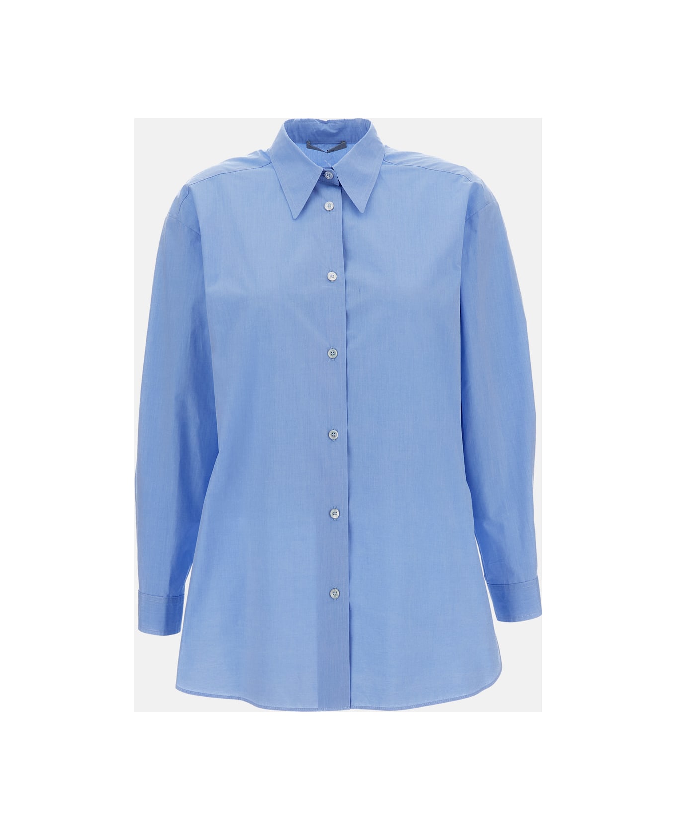 Cotton shirt Comfortable fit Full central button fastening Side slits Pointed collar Buttoned cuffs Color: light blue Made in Italy