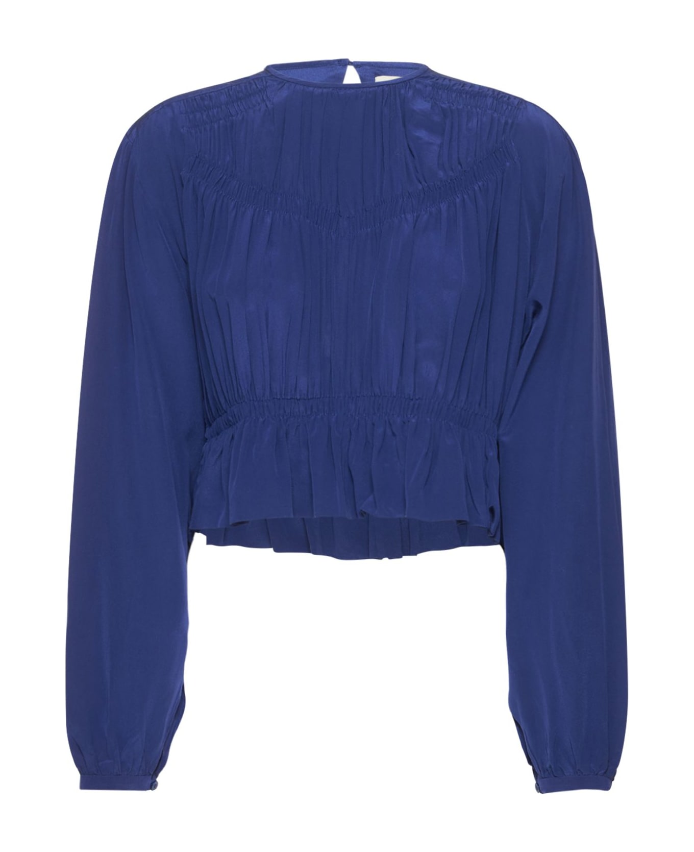 Cropped blouse in an elegant shade of blue. features long sleeves and buttoned cuffs, offering comfort and style. the simple and refined design makes it versatile, perfect for both casual and more formal outfits. made with high-quality materials for a soft feel on the skin. ideal for the spring and summer seasons. 100% silk Composition: 100% % Silk