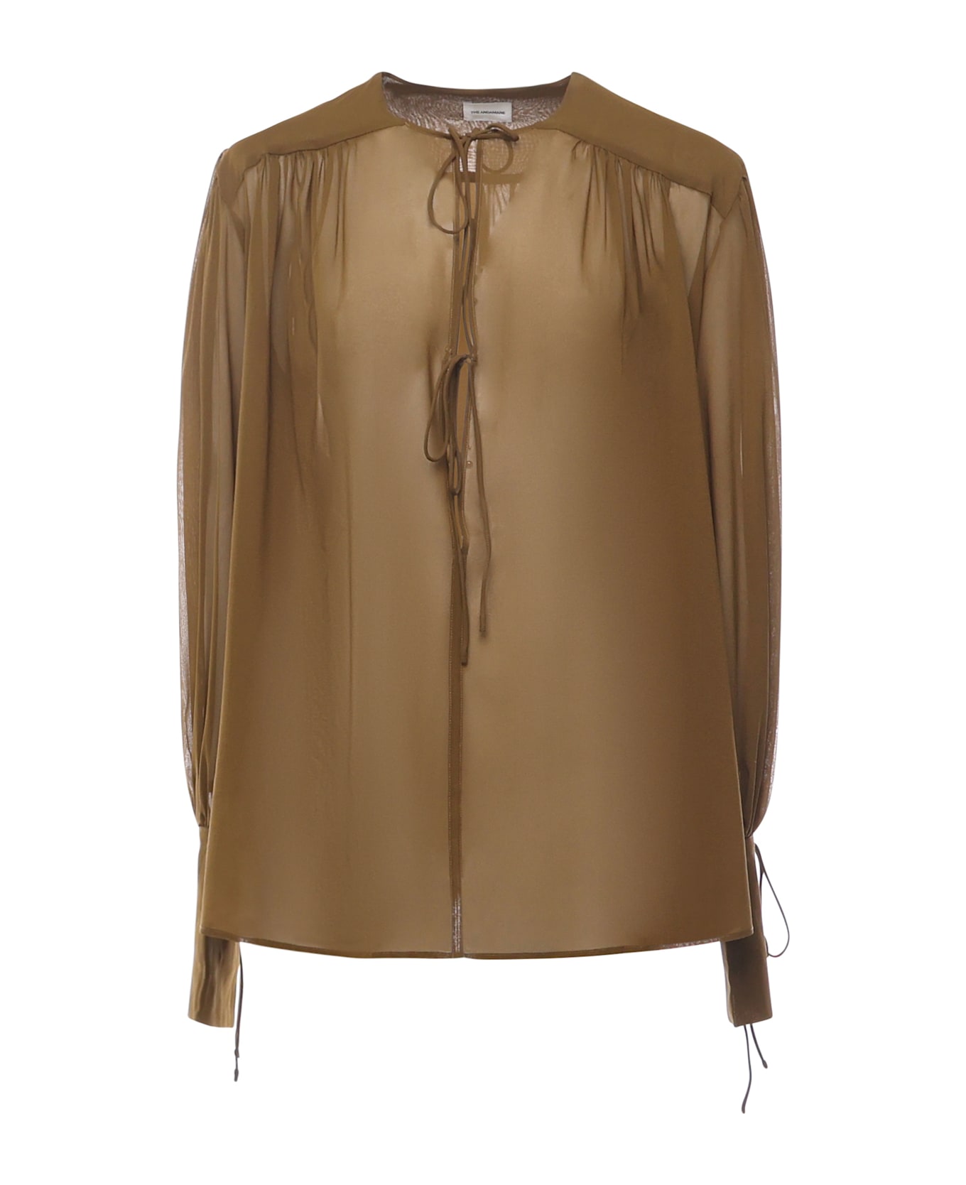- Made of georgette - Front lace-up closure - Lace-up cuffs - Size shown in photo is 38 - Made in Italy - Designer color: Cigar