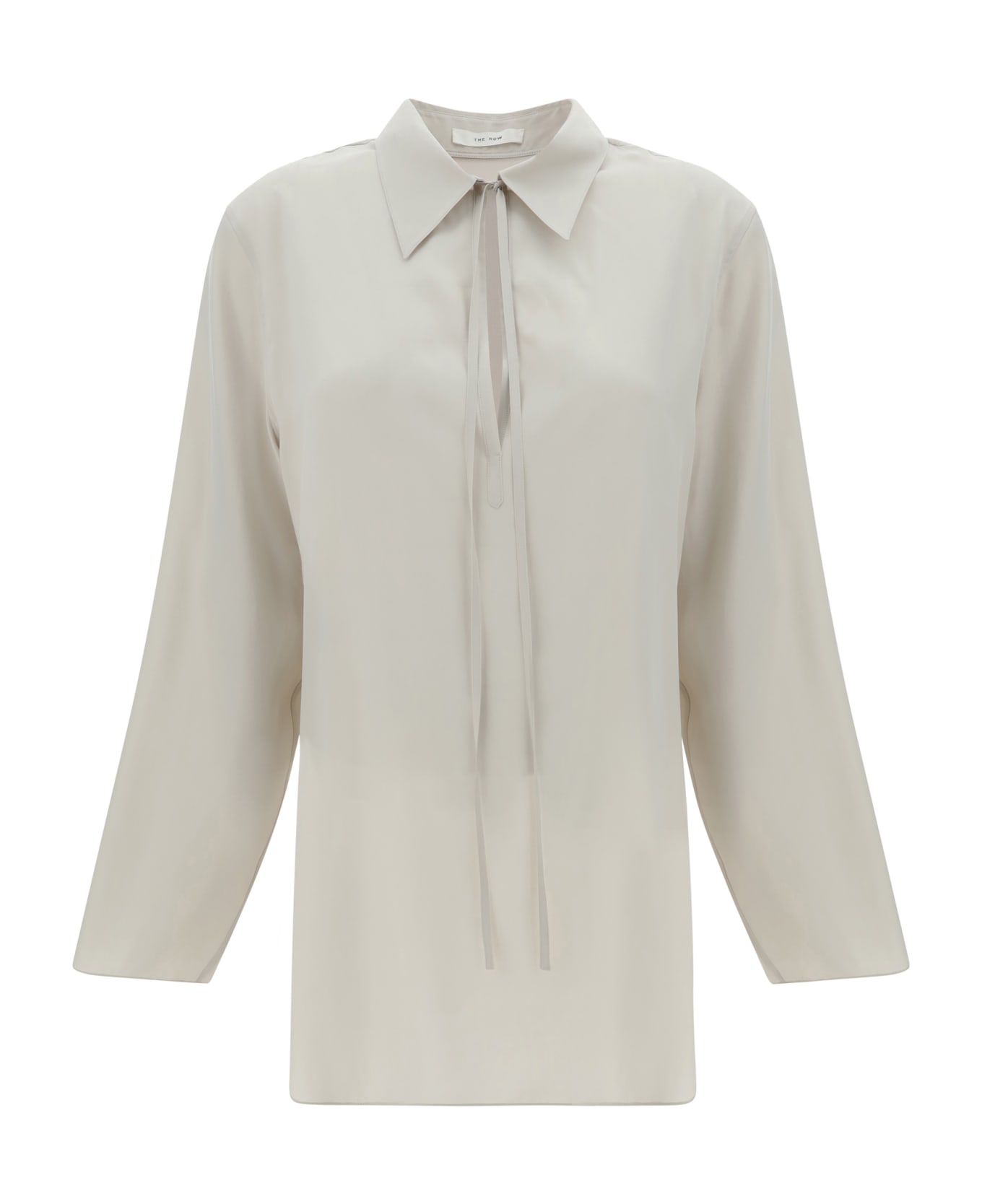 Silk malon shirt by the row, front fastening with concealed buttons, classic collar, self-tie detail at front collar, monochrome pattern, oversized fit. Composition: 100% % Silk