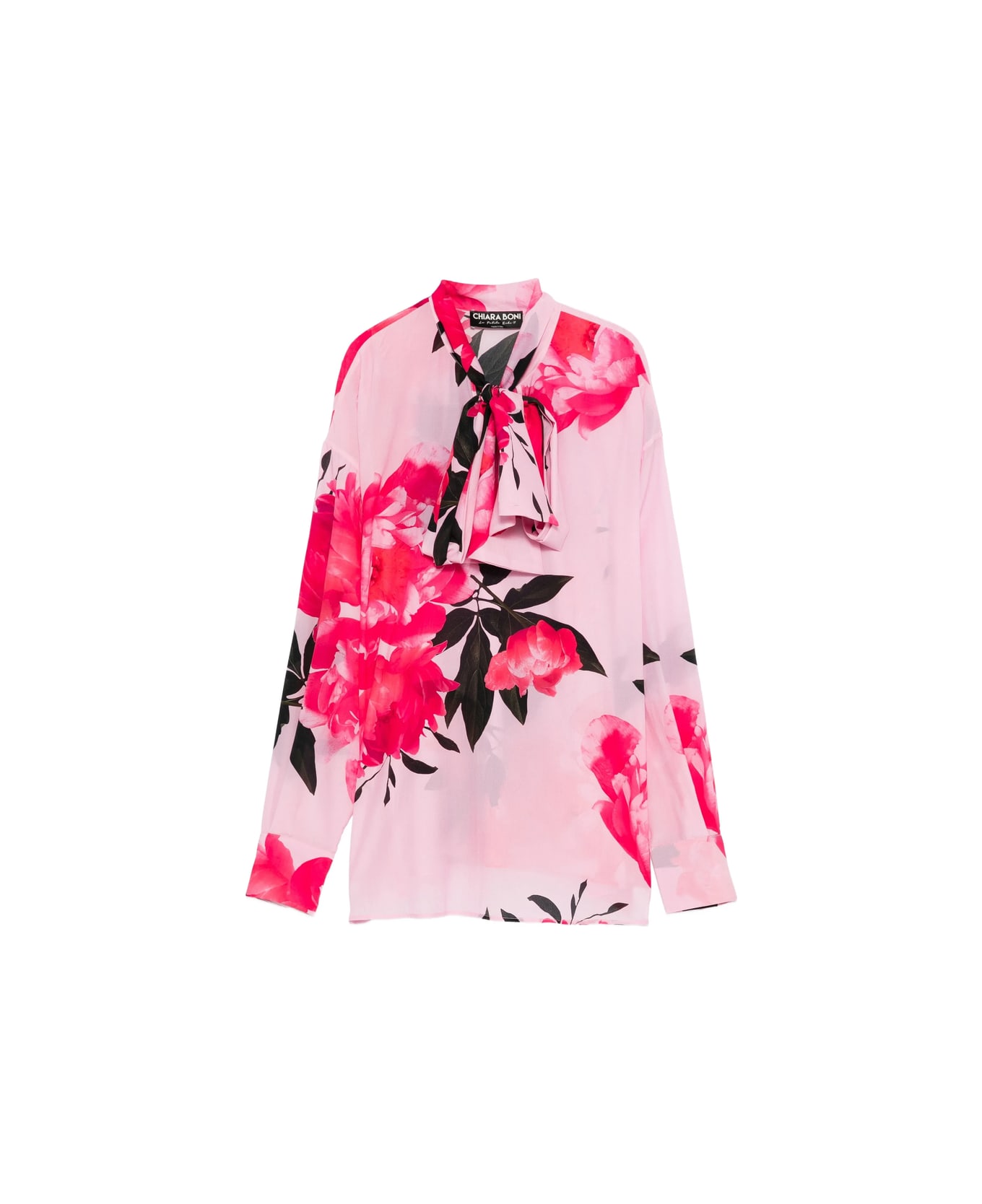 light pink floral print tied neck long sleeves silk