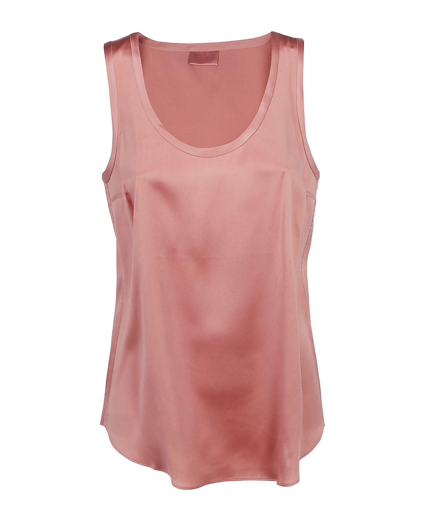 Pink Silk Top by Brunello Cucinelli, low crew neck collar, sleeveless. Composition: 96% Silk, 4% Elastane