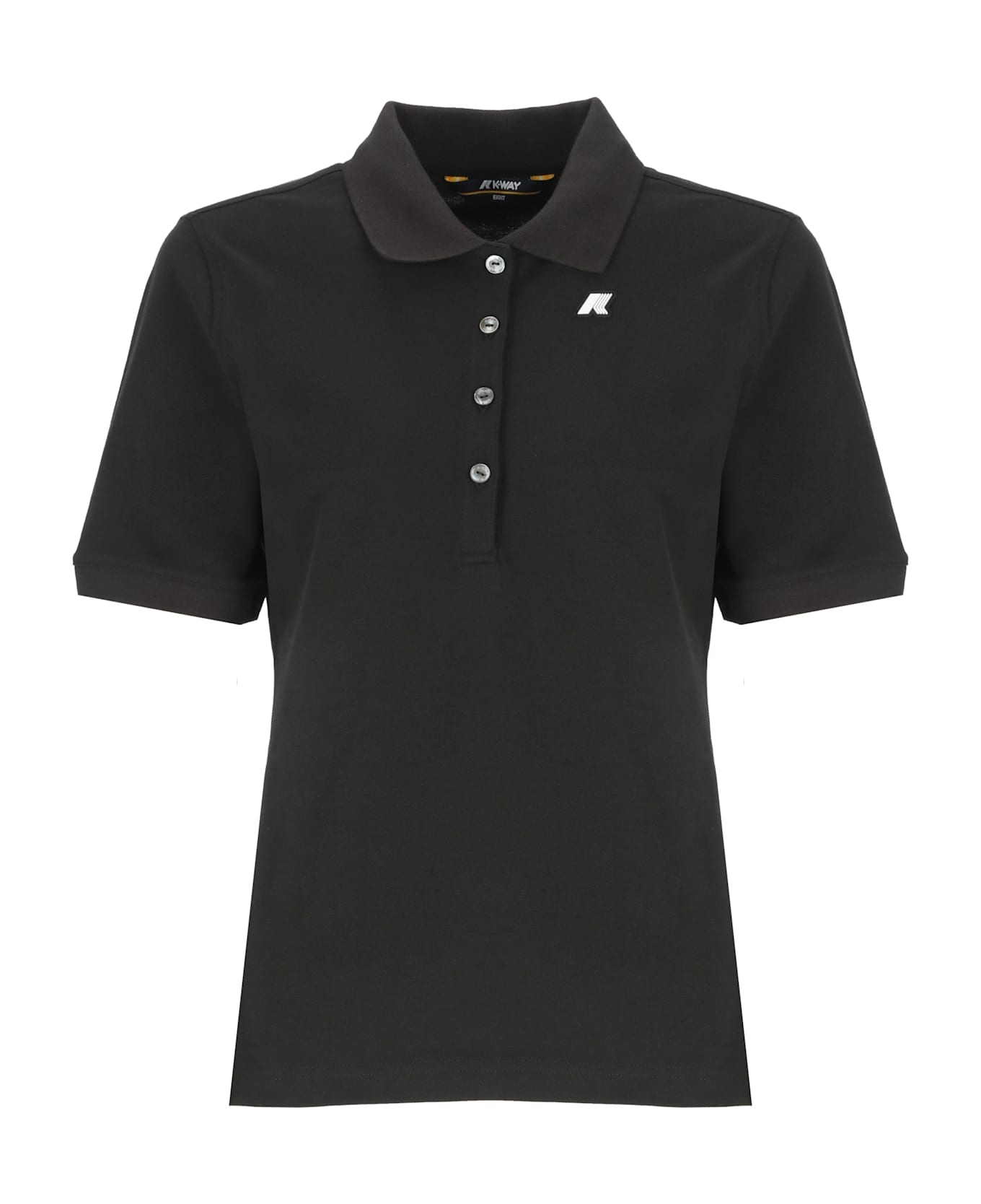 - Black K-Way three-buttons polo shirt for woman - Collar - Short sleeves - Front contrasting color logo