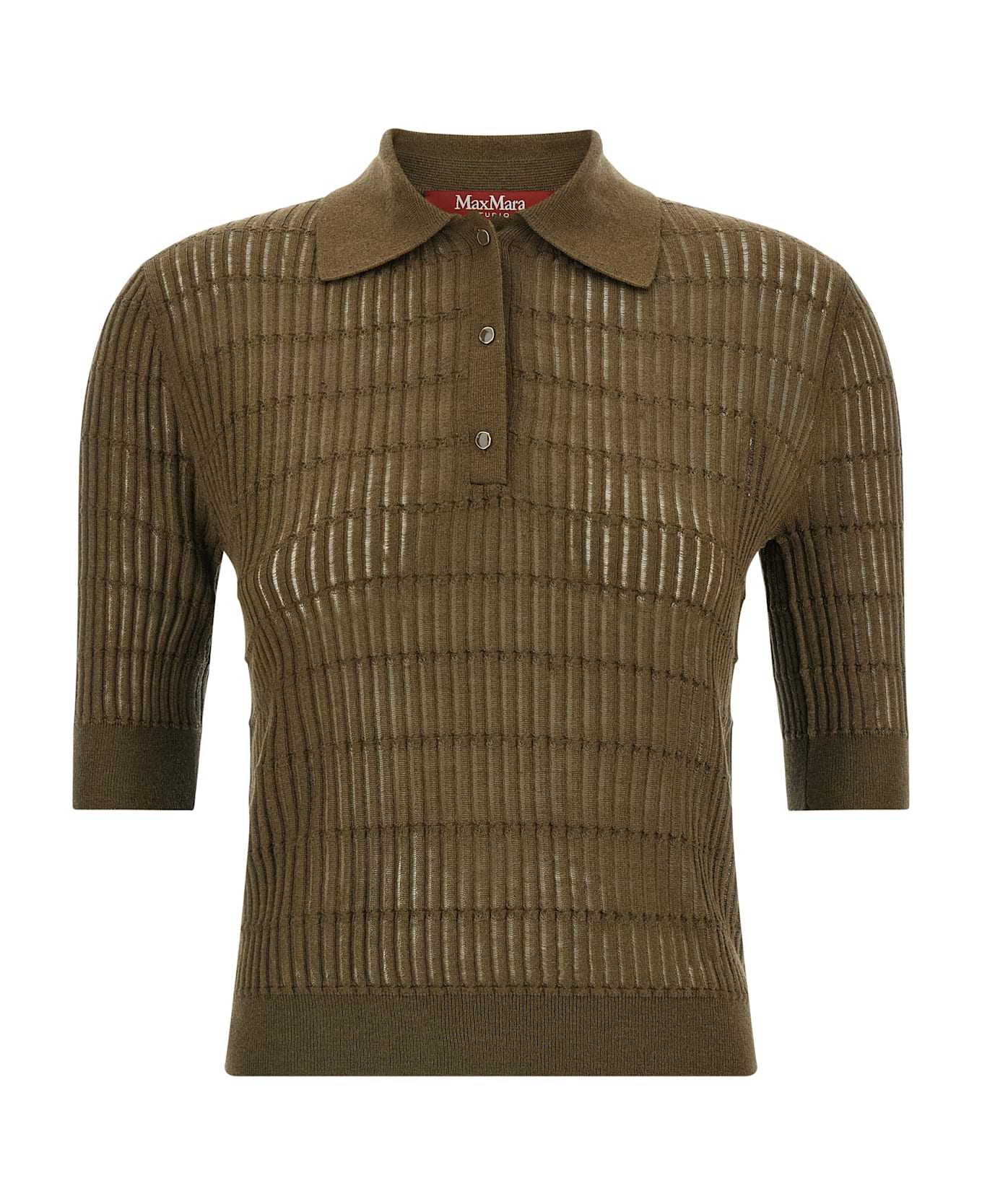 'MstGallo' polo shirt in wool and silk yarn worked in flat ribbed with à jour details, collar and buttons, short sleeves with cuffs, band on the hem. Composition: 55% silk, 45% wool