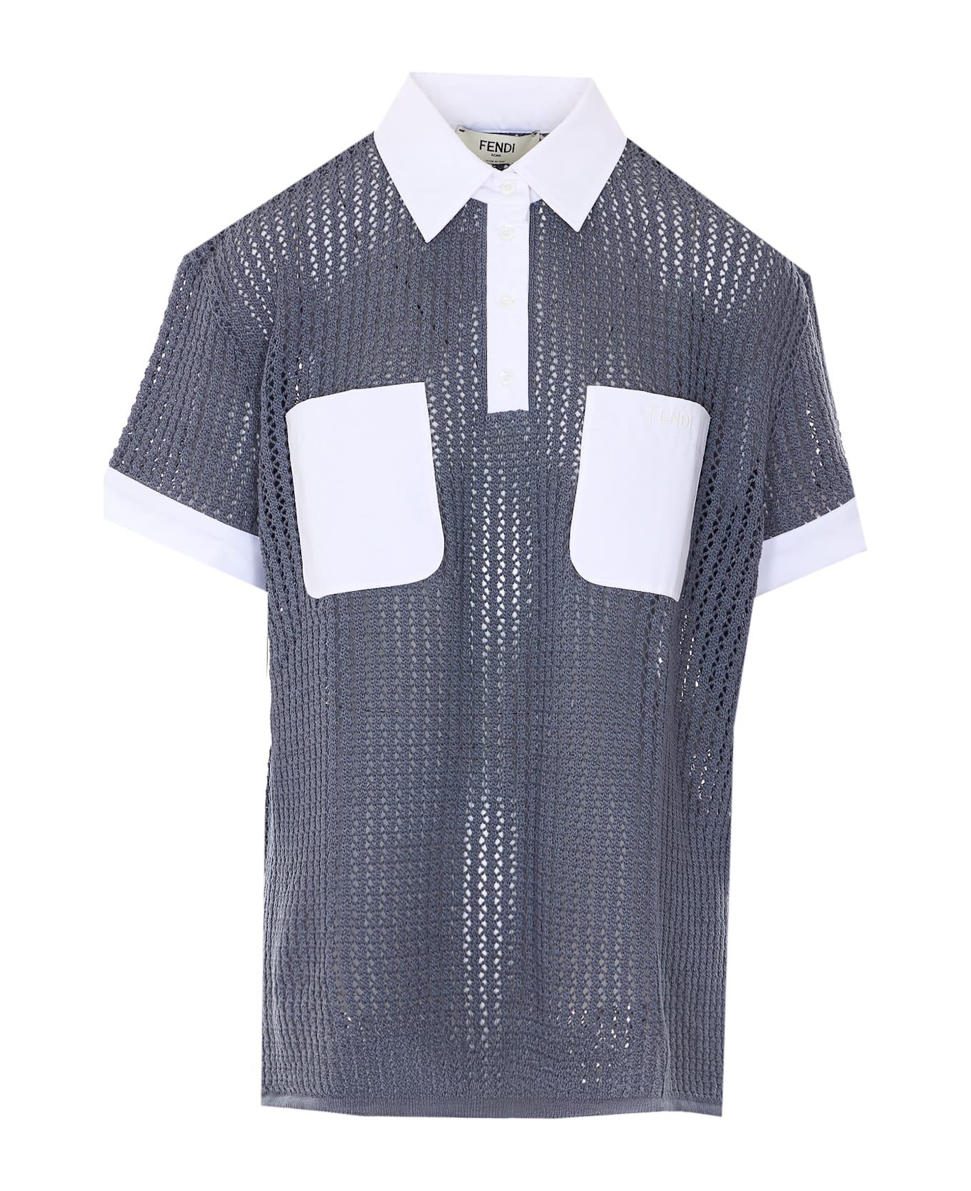 Fendi grey and white military mesh polo, regular collar, buttons closure, pocket with embroidered logo on the front Composition: 10% Cotton