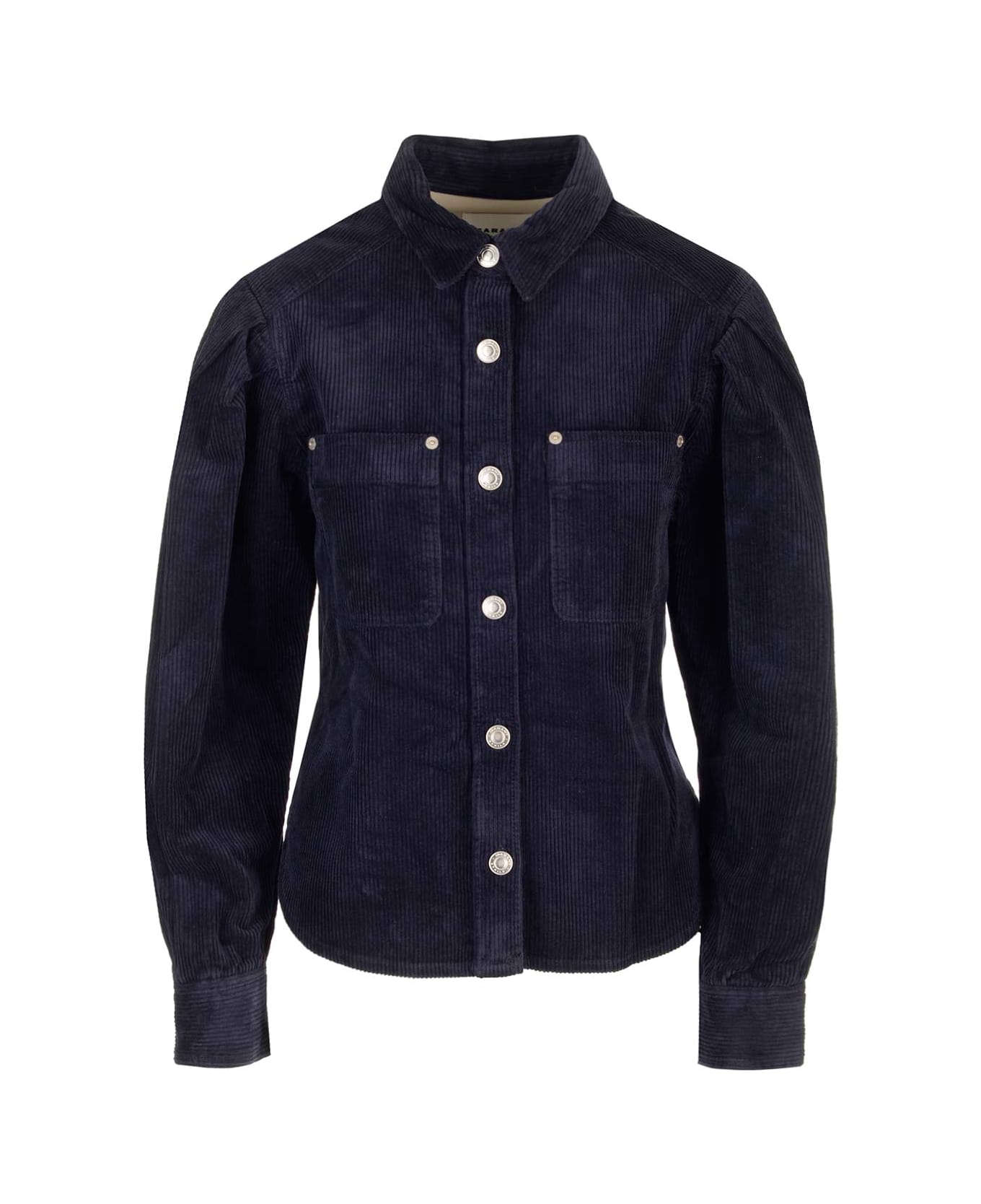 "Renata" blue corduroy shirt from Marant Etoile with front buttoning, patch pockets