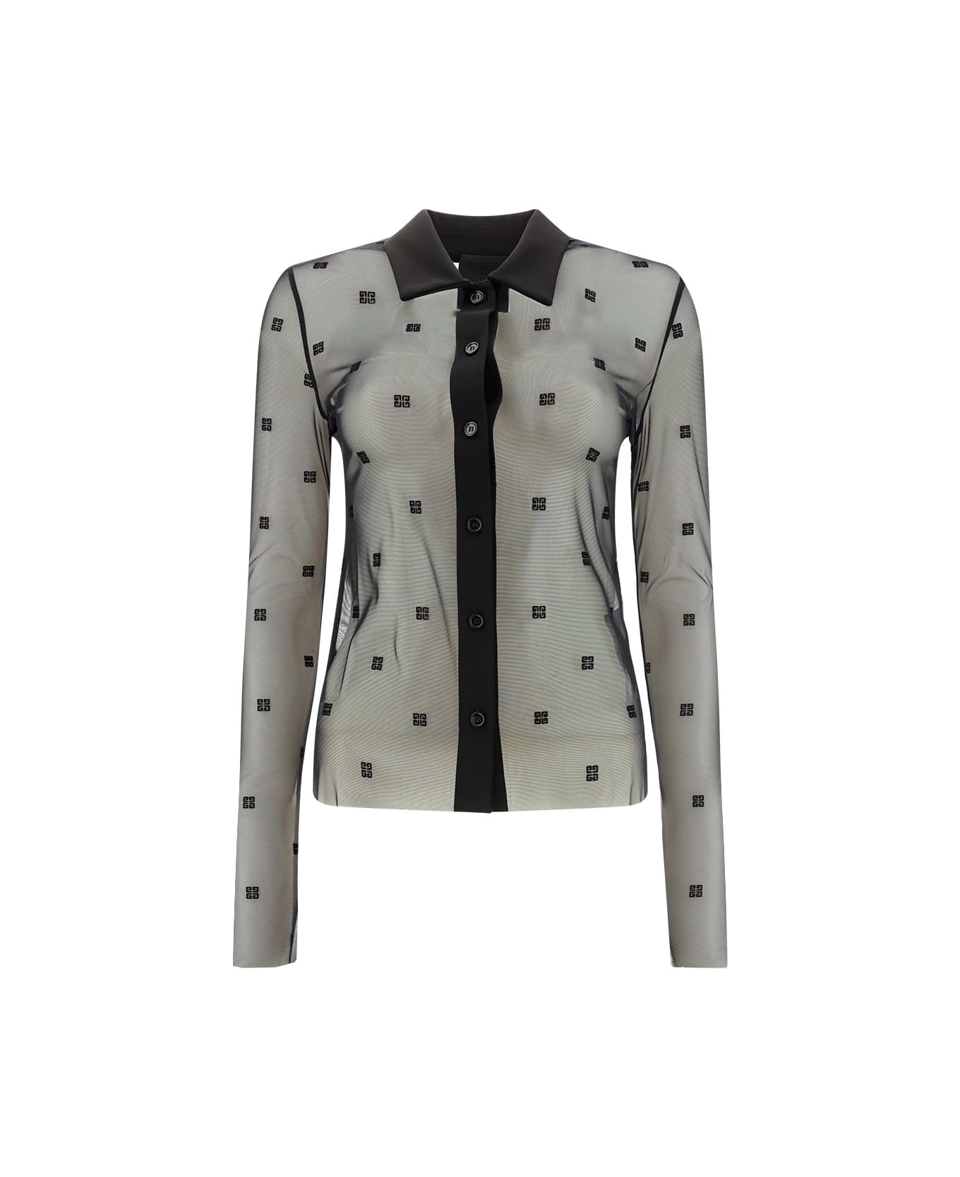 4g shirt by gicenchy, contrasting classic collar, front button fastening, transparent design, contrasting all-over iconic 4g brand logo, regular fit. Composition: 18% % Elastane, 82% % Polyamide