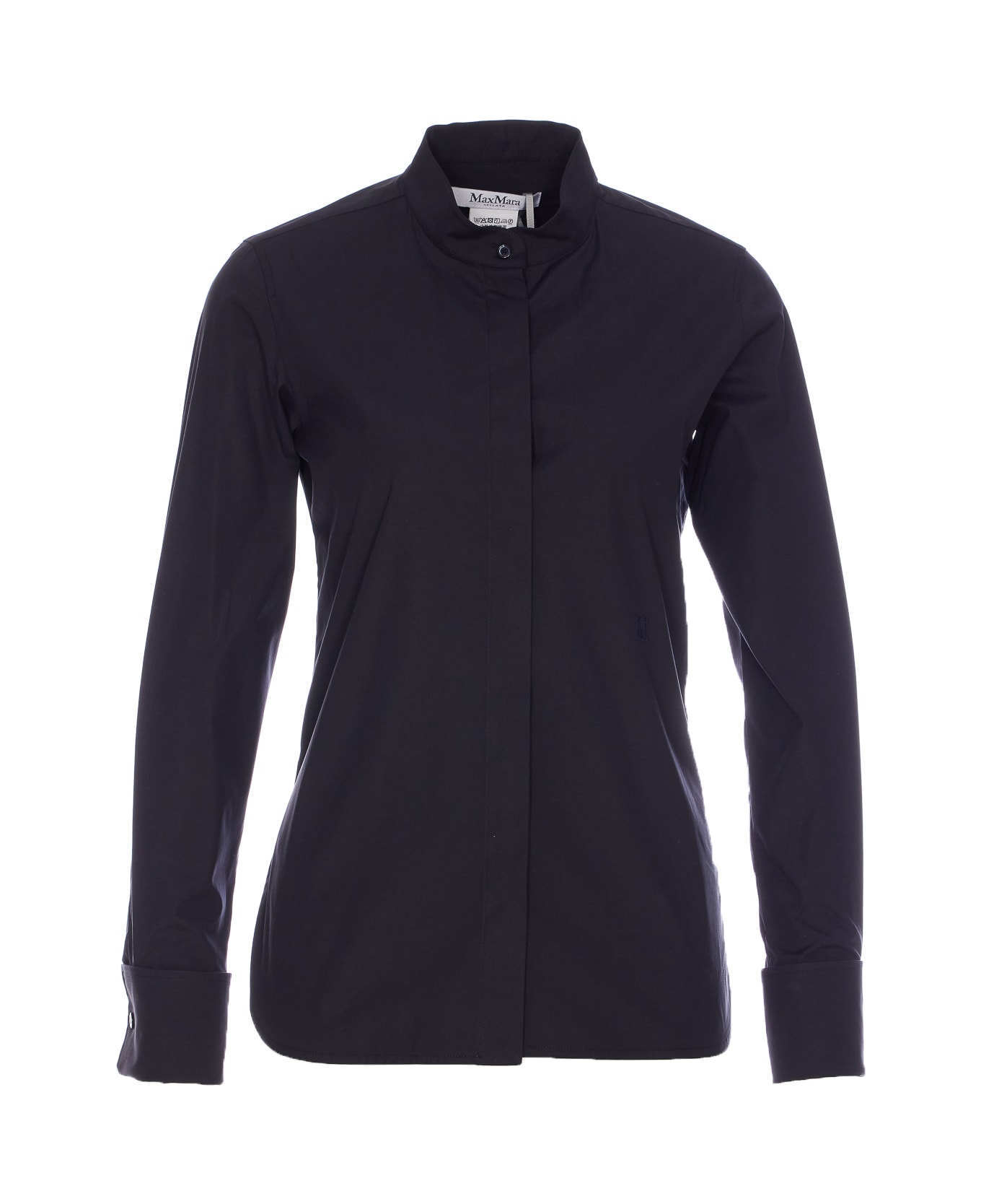 Max Mara blue Arduino shirt with frontal buttons closure, crewneck, long sleeves, button closure,embroidered logo on the front Composition: 97% Cotton, 3% Elatsane