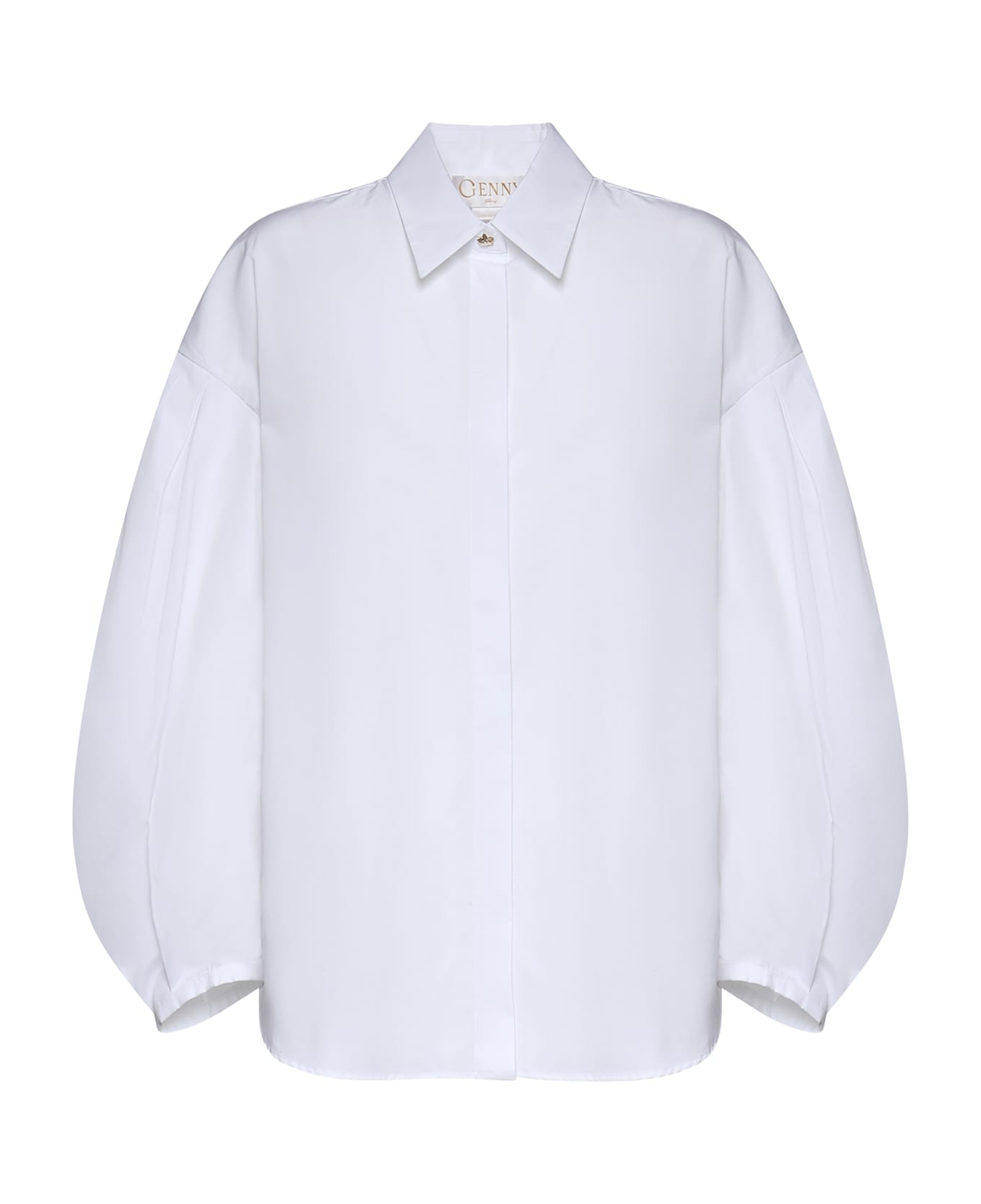 - Front button closure - Long voluminous sleeves - Pointed collar - Oversized - Size shown is 40 - Made in Italy - Color: White