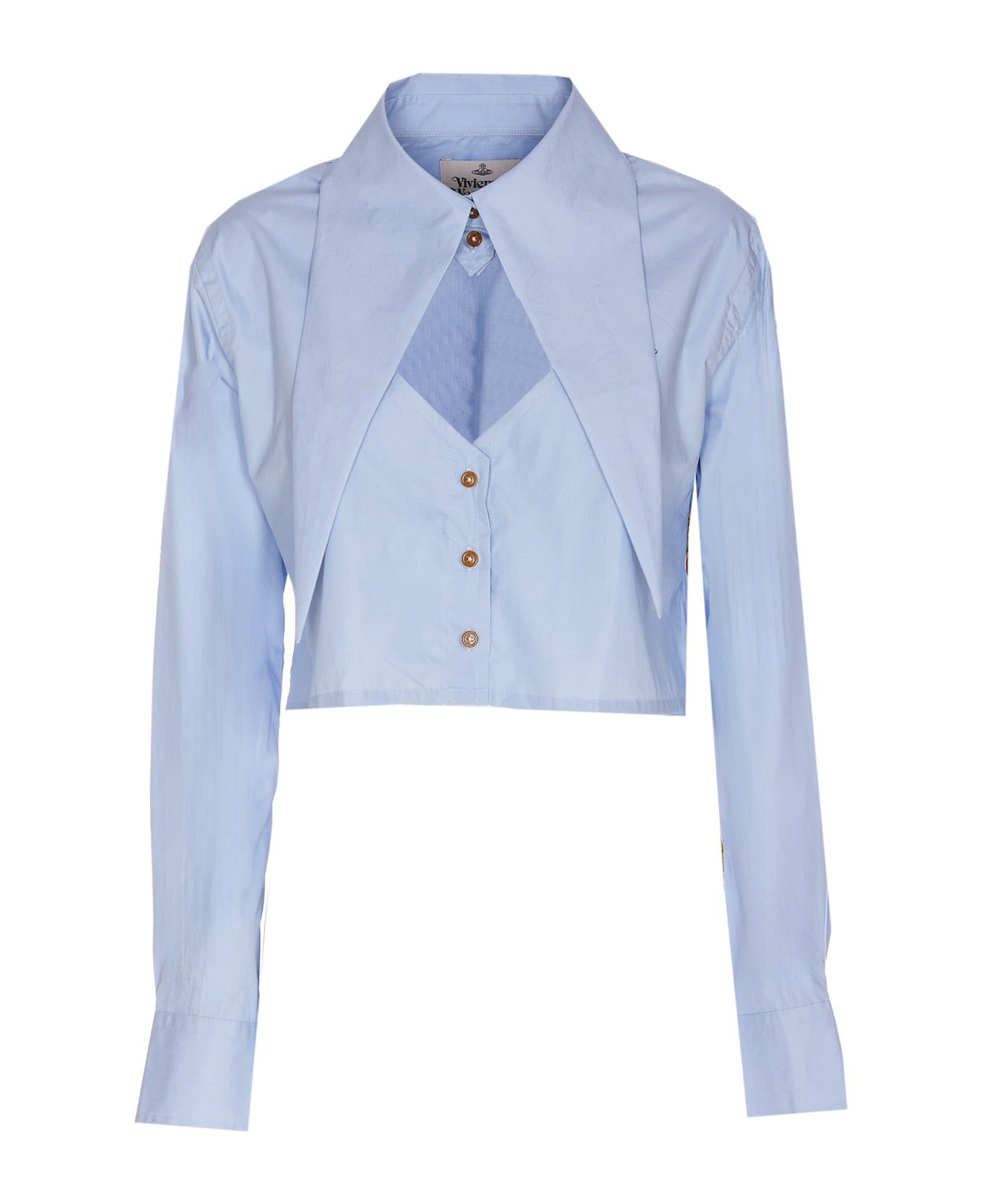 Vivienne Westwood blue Cuf of Heart with frontal buttons closure, regular collar, long sleeves, embroidered Orb logo on the front, crop model, buttons on cuffs Composition: 100% Cotton